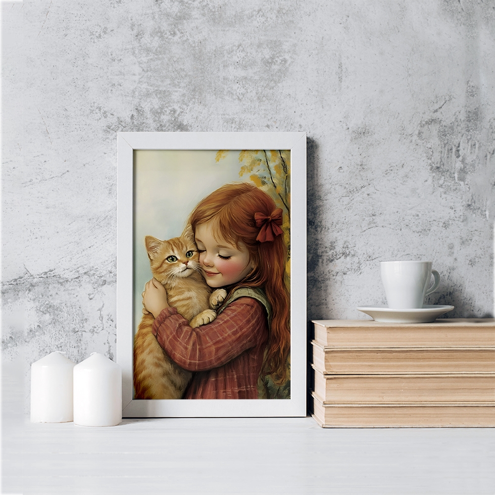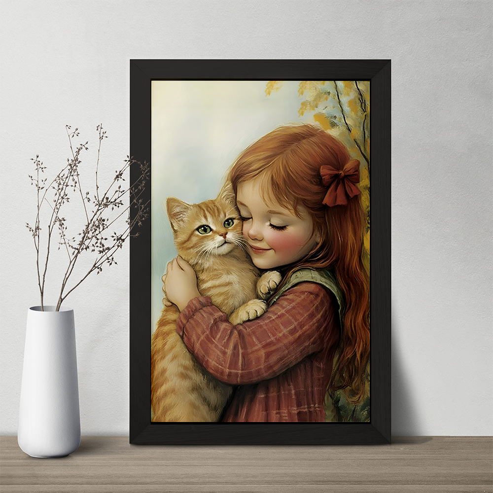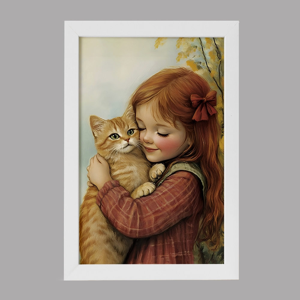 تابلو یا قاب عکس دختر و گربه خندالو در ابعاد مختلف با استفاده از بهترین برند پروفیل پی وی سی دو سانتی متری بسیار مرغوب، تولید شده اند و در مونتاژ و نصب آنها نهایت دقت در قرارگیری هر چه دقیق تر لبه ها به یکدیگر صورت گرفته است. همچنین در پشت قاب ها گیره ای برای اتصال راحت به دیوار تعبیه شده است.