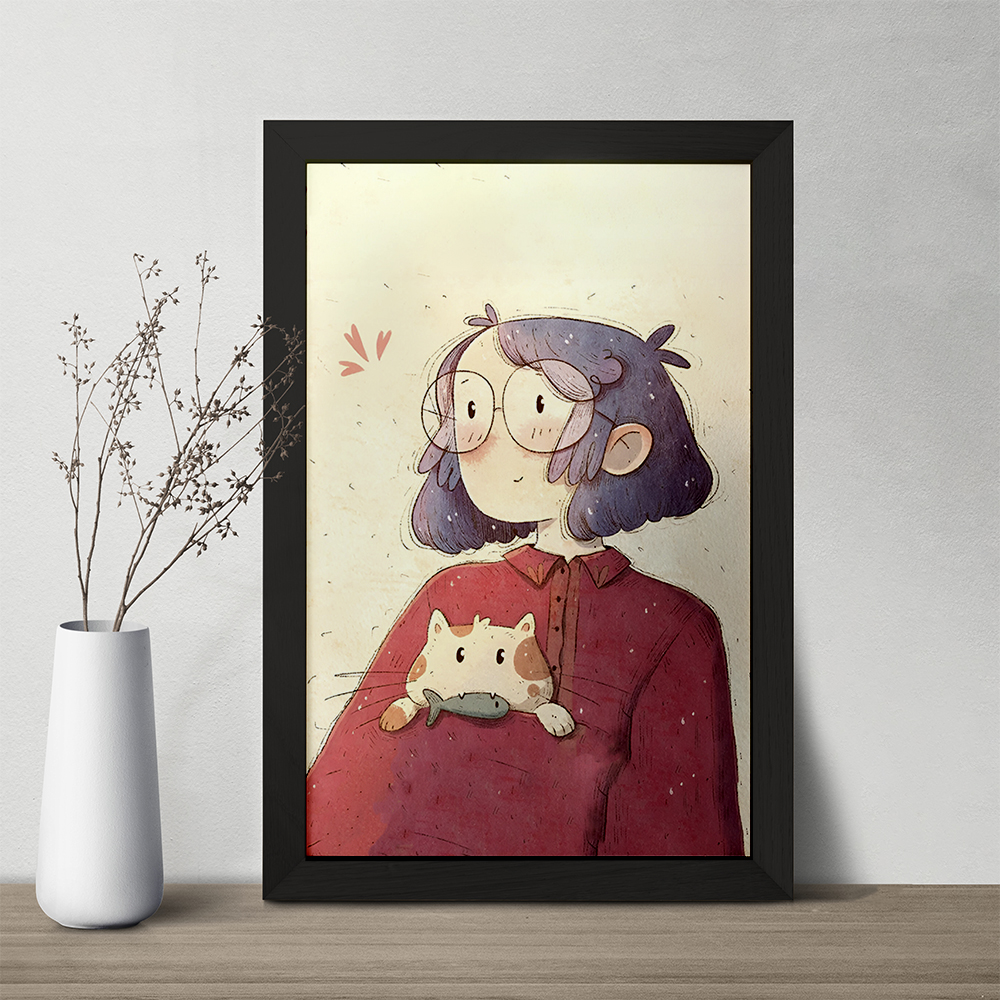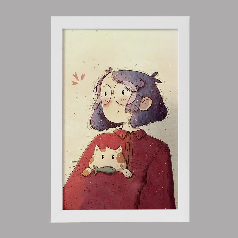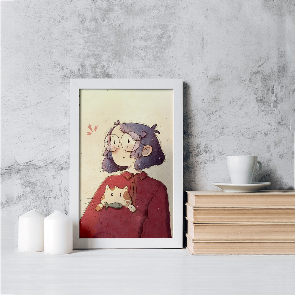 تابلو یا قاب عکس دختر و گربه خندالو در ابعاد مختلف با استفاده از بهترین برند پروفیل پی وی سی دو سانتی متری بسیار مرغوب، تولید شده اند و در مونتاژ و نصب آنها نهایت دقت در قرارگیری هر چه دقیق تر لبه ها به یکدیگر صورت گرفته است. همچنین در پشت قاب ها گیره ای برای اتصال راحت به دیوار تعبیه شده است.