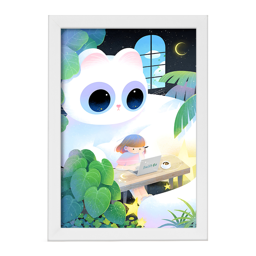 تابلو یا قاب عکس دختر و گربه خندالو در ابعاد مختلف با استفاده از بهترین برند پروفیل پی وی سی دو سانتی متری بسیار مرغوب، تولید شده اند و در مونتاژ و نصب آنها نهایت دقت در قرارگیری هر چه دقیق تر لبه ها به یکدیگر صورت گرفته است. همچنین در پشت قاب ها گیره ای برای اتصال راحت به دیوار تعبیه شده است. چاپ طرح تابلوی دختر و گربه با بالاترین کیفیت بوسیله چاپگرهای دیجیتال شش رنگ و کاغذ با کیفیت عکاسی انجام شده و بر روی آن شیشه ای با کیفیت و شفاف در سطح قاب قرار گرفته که از کاغذ عکس محافظت میکند. بسته بندی تابلوها جعبه های مقاوم و محکمی بوده که علاوه بر محافظتی که از بدنه قاب می کند، ظاهر جذابی دارد و تابلوی دختر و گربه را بدل به محصولی مناسب هدیه کرده است. تابلوهای خندالو با تنوع طرحی بسیار بالا شامل تابلو های دکوراتیو قابل استفاده در اتاق کودک، محل کار و منازل می باشد که سلیقه هر مخاطبی را پوشش می دهد، ضمن اینکه امکان تعویض عکس موجود در قاب وجود داشته و می توان عکس های خانوادگی و … را نیز در آن قرار داد.