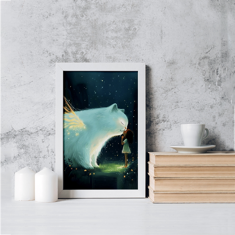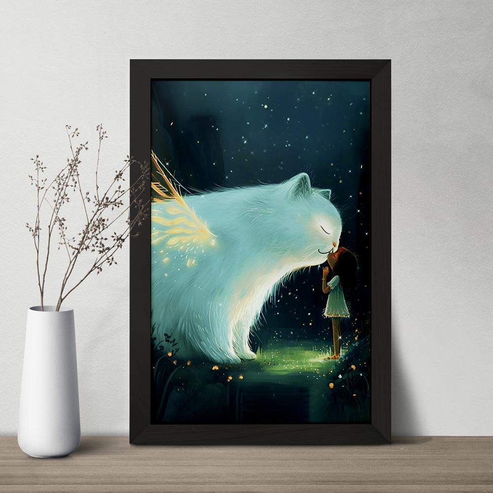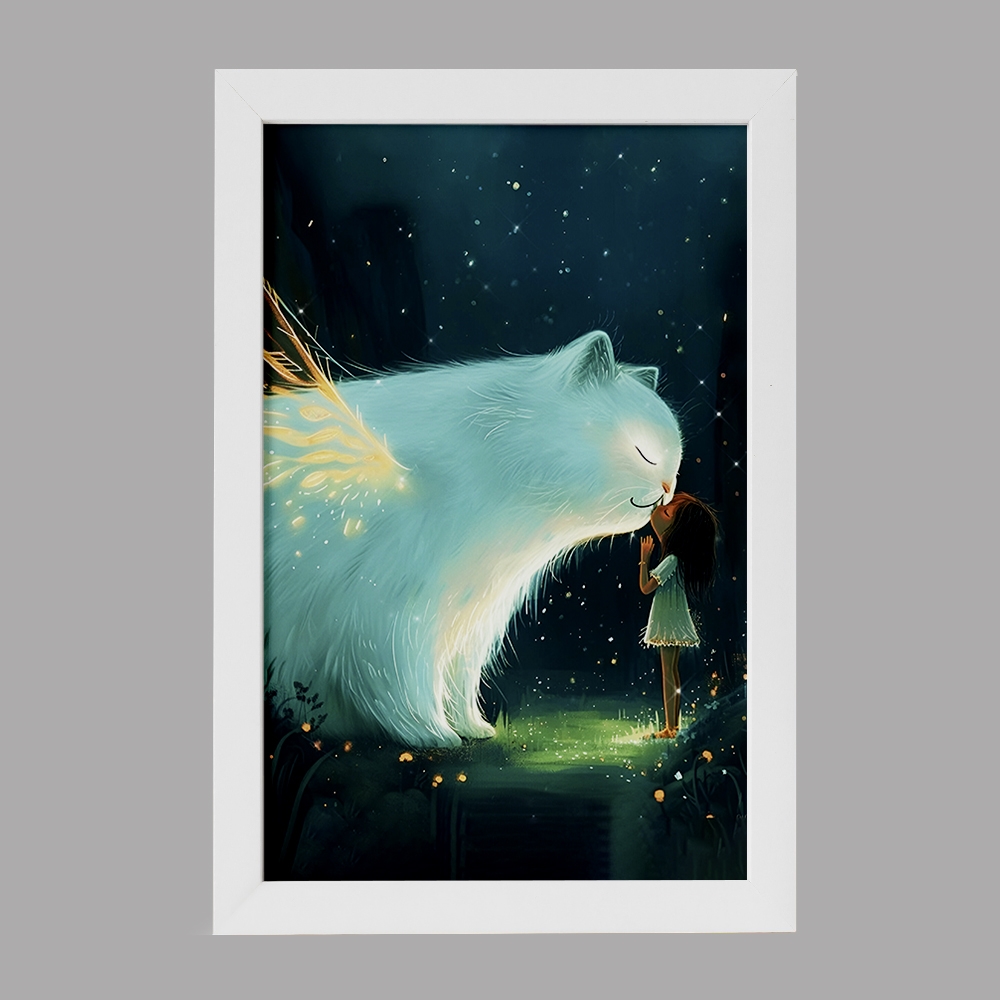 تابلو یا قاب عکس دختر و گربه خندالو در ابعاد مختلف با استفاده از بهترین برند پروفیل پی وی سی دو سانتی متری بسیار مرغوب، تولید شده اند و در مونتاژ و نصب آنها نهایت دقت در قرارگیری هر چه دقیق تر لبه ها به یکدیگر صورت گرفته است. همچنین در پشت قاب ها گیره ای برای اتصال راحت به دیوار تعبیه شده است.