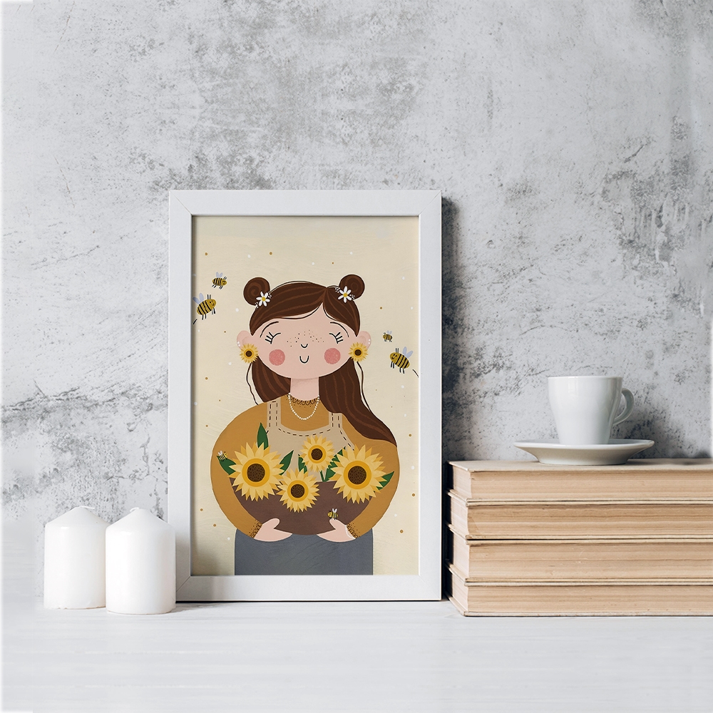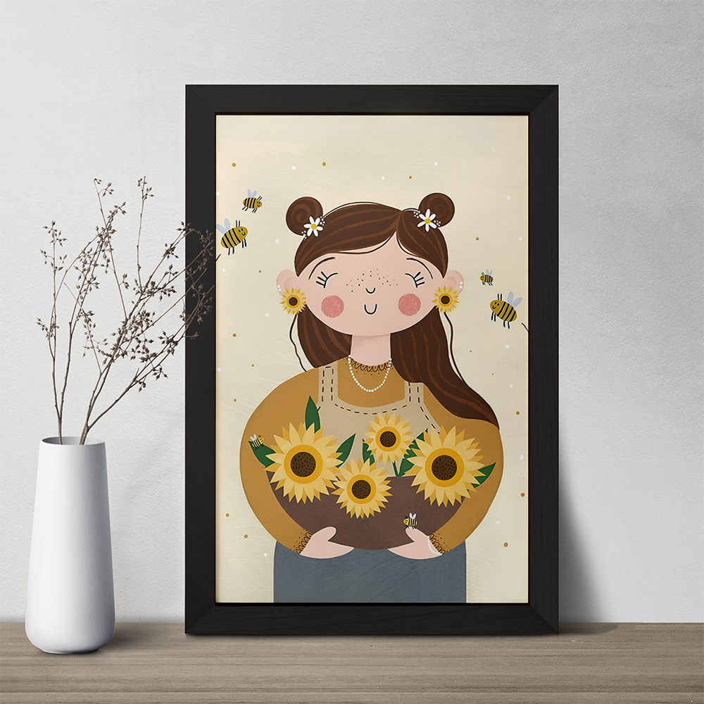 تابلو یا قاب عکس دختر و گل آفتابگردان خندالو در ابعاد مختلف با استفاده از بهترین برند پروفیل پی وی سی دو سانتی متری بسیار مرغوب، تولید شده اند و در مونتاژ و نصب آنها نهایت دقت در قرارگیری هر چه دقیق تر لبه ها به یکدیگر صورت گرفته است. همچنین در پشت قاب ها گیره ای برای اتصال راحت به دیوار تعبیه شده است.