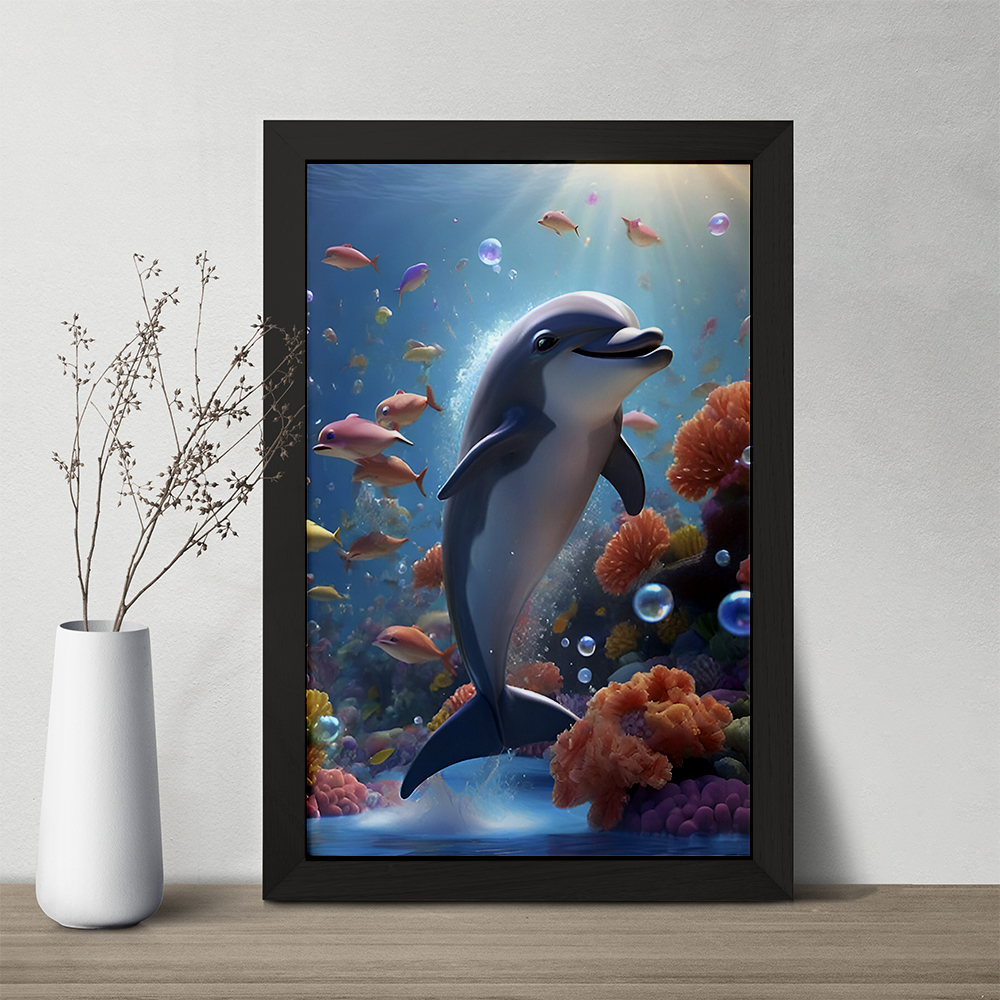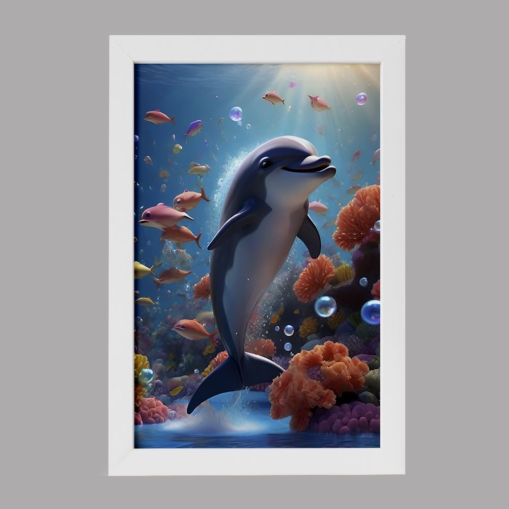 تابلو یا قاب عکس دلفین خندالو در ابعاد مختلف با استفاده از بهترین برند پروفیل پی وی سی دو سانتی متری بسیار مرغوب، تولید شده اند و در مونتاژ و نصب آنها نهایت دقت در قرارگیری هر چه دقیق تر لبه ها به یکدیگر صورت گرفته است. همچنین در پشت قاب ها گیره ای برای اتصال راحت به دیوار تعبیه شده است. چاپ طرح تابلوی دلفین با بالاترین کیفیت بوسیله چاپگرهای دیجیتال شش رنگ و کاغذ با کیفیت عکاسی انجام شده و بر روی آن شیشه ای با کیفیت و شفاف در سطح قاب قرار گرفته که از کاغذ عکس محافظت میکند. بسته بندی تابلوها جعبه های مقاوم و محکمی بوده که علاوه بر محافظتی که از بدنه قاب می کند، ظاهر جذابی دارد و تابلوی دلفین را بدل به محصولی مناسب هدیه کرده است. تابلوهای خندالو با تنوع طرحی بسیار بالا شامل تابلو های دکوراتیو قابل استفاده در اتاق کودک، محل کار و منازل می باشد که سلیقه هر مخاطبی را پوشش می دهد، ضمن اینکه امکان تعویض عکس موجود در قاب وجود داشته و می توان عکس های خانوادگی و … را نیز در آن قرار داد.