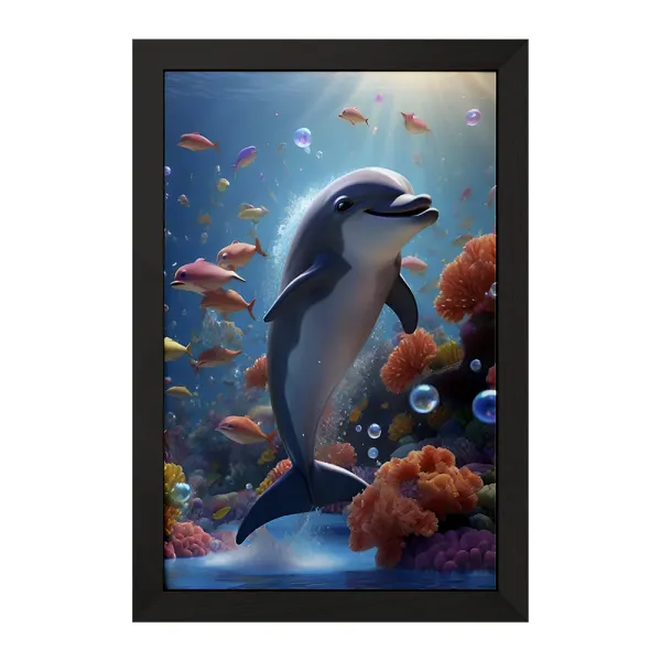 تابلو یا قاب عکس دلفین خندالو در ابعاد مختلف با استفاده از بهترین برند پروفیل پی وی سی دو سانتی متری بسیار مرغوب، تولید شده اند و در مونتاژ و نصب آنها نهایت دقت در قرارگیری هر چه دقیق تر لبه ها به یکدیگر صورت گرفته است. همچنین در پشت قاب ها گیره ای برای اتصال راحت به دیوار تعبیه شده است. چاپ طرح تابلوی دلفین با بالاترین کیفیت بوسیله چاپگرهای دیجیتال شش رنگ و کاغذ با کیفیت عکاسی انجام شده و بر روی آن شیشه ای با کیفیت و شفاف در سطح قاب قرار گرفته که از کاغذ عکس محافظت میکند. بسته بندی تابلوها جعبه های مقاوم و محکمی بوده که علاوه بر محافظتی که از بدنه قاب می کند، ظاهر جذابی دارد و تابلوی دلفین را بدل به محصولی مناسب هدیه کرده است. تابلوهای خندالو با تنوع طرحی بسیار بالا شامل تابلو های دکوراتیو قابل استفاده در اتاق کودک، محل کار و منازل می باشد که سلیقه هر مخاطبی را پوشش می دهد، ضمن اینکه امکان تعویض عکس موجود در قاب وجود داشته و می توان عکس های خانوادگی و … را نیز در آن قرار داد.