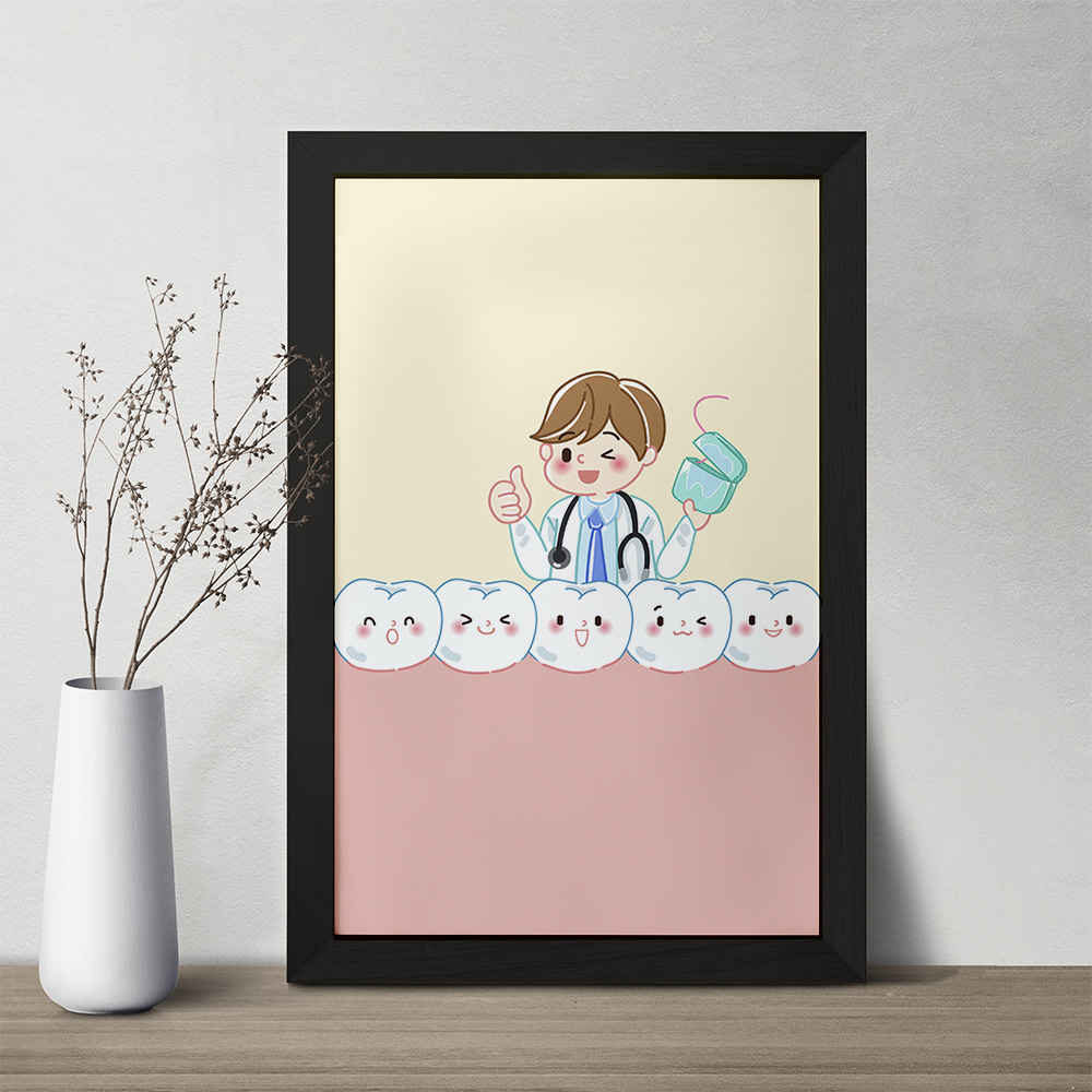 تابلو یا قاب عکس دندان و دندان پزشکی کودکانه خندالو در ابعاد مختلف با استفاده از بهترین برند پروفیل پی وی سی دو سانتی متری بسیار مرغوب، تولید شده اند و در مونتاژ و نصب آنها نهایت دقت در قرارگیری هر چه دقیق تر لبه ها به یکدیگر صورت گرفته است. همچنین در پشت قاب ها گیره ای برای اتصال راحت به دیوار تعبیه شده است.