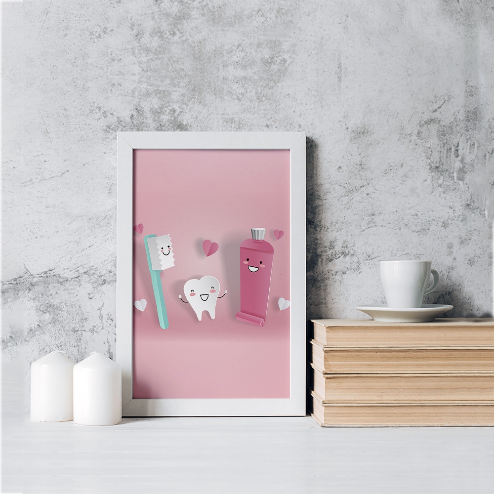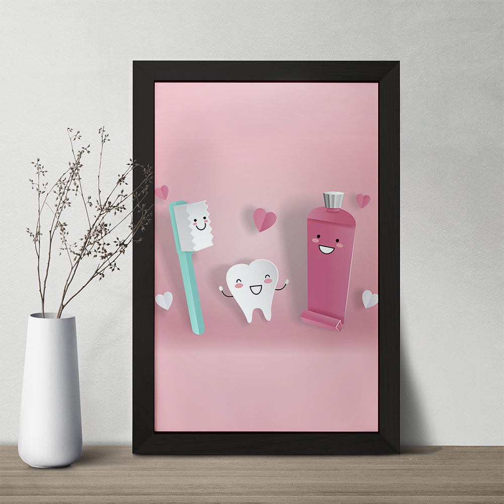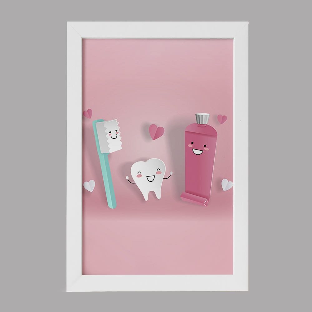 تابلو یا قاب عکس دندان و دندان پزشکی کودکانه خندالو در ابعاد مختلف با استفاده از بهترین برند پروفیل پی وی سی دو سانتی متری بسیار مرغوب، تولید شده اند و در مونتاژ و نصب آنها نهایت دقت در قرارگیری هر چه دقیق تر لبه ها به یکدیگر صورت گرفته است. همچنین در پشت قاب ها گیره ای برای اتصال راحت به دیوار تعبیه شده است.