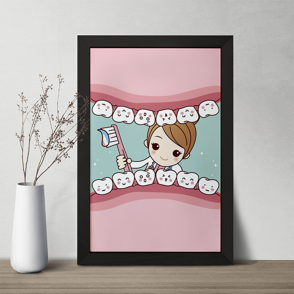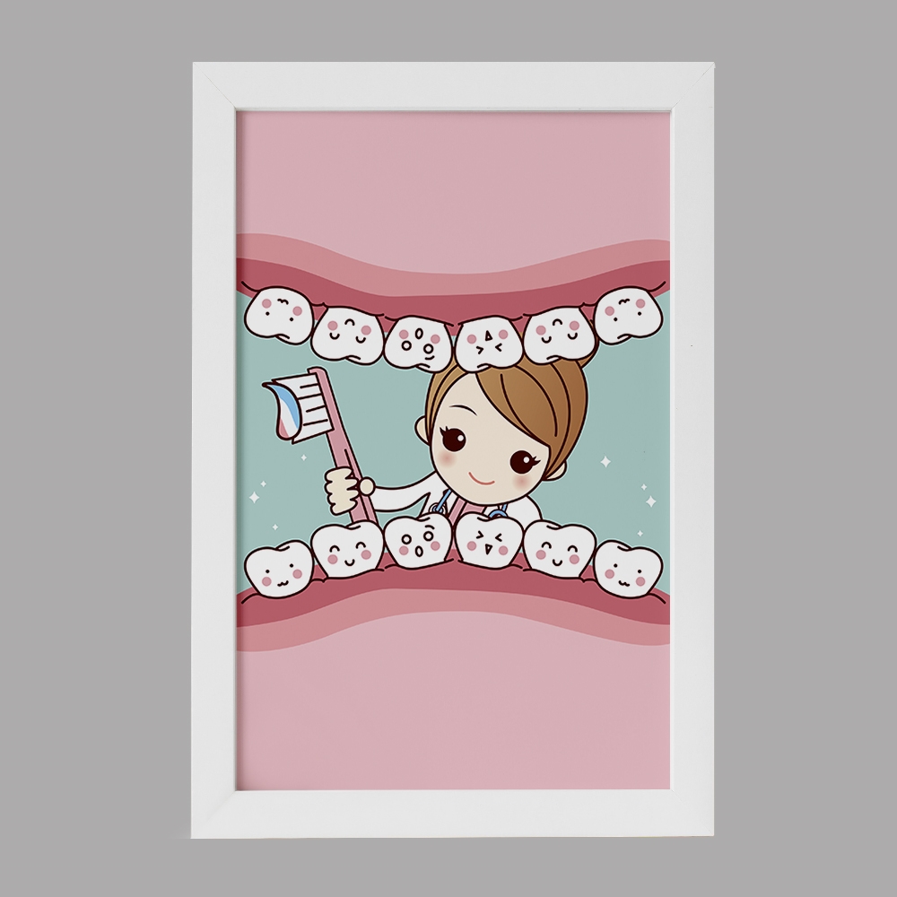 تابلو یا قاب عکس دندان و دندان پزشکی کودکانه خندالو در ابعاد مختلف با استفاده از بهترین برند پروفیل پی وی سی دو سانتی متری بسیار مرغوب، تولید شده اند و در مونتاژ و نصب آنها نهایت دقت در قرارگیری هر چه دقیق تر لبه ها به یکدیگر صورت گرفته است. همچنین در پشت قاب ها گیره ای برای اتصال راحت به دیوار تعبیه شده است.