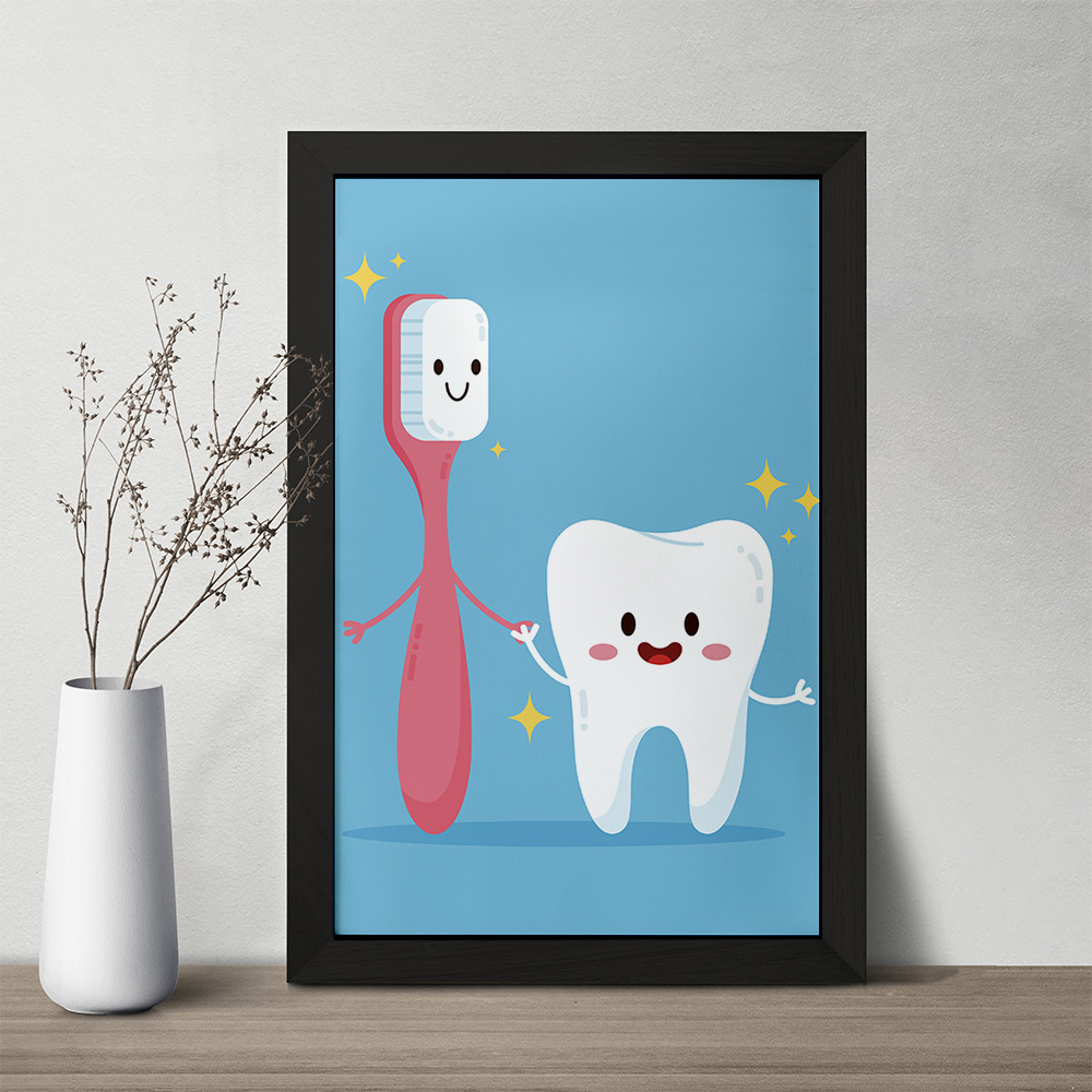 تابلو یا قاب عکس دندان و دندان پزشکی کودکانه خندالو در ابعاد مختلف با استفاده از بهترین برند پروفیل پی وی سی دو سانتی متری بسیار مرغوب، تولید شده اند و در مونتاژ و نصب آنها نهایت دقت در قرارگیری هر چه دقیق تر لبه ها به یکدیگر صورت گرفته است. همچنین در پشت قاب ها گیره ای برای اتصال راحت به دیوار تعبیه شده است.
