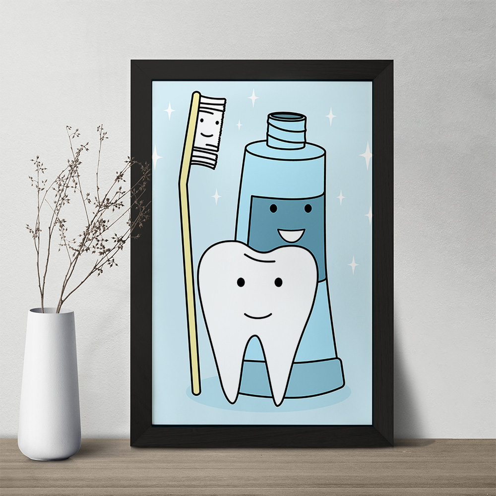 تابلو یا قاب عکس دندان و دندان پزشکی کودکانه خندالو در ابعاد مختلف با استفاده از بهترین برند پروفیل پی وی سی دو سانتی متری بسیار مرغوب، تولید شده اند و در مونتاژ و نصب آنها نهایت دقت در قرارگیری هر چه دقیق تر لبه ها به یکدیگر صورت گرفته است. همچنین در پشت قاب ها گیره ای برای اتصال راحت به دیوار تعبیه شده است.