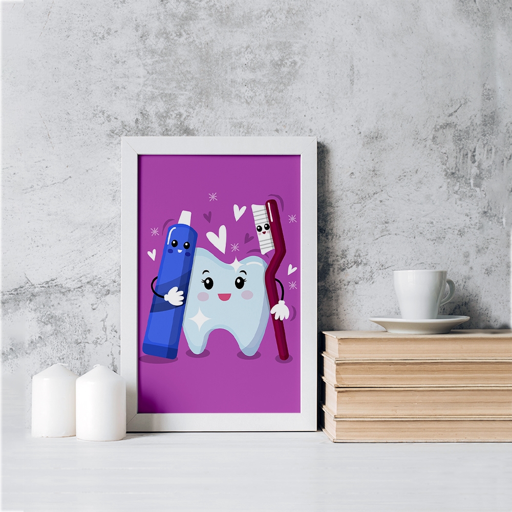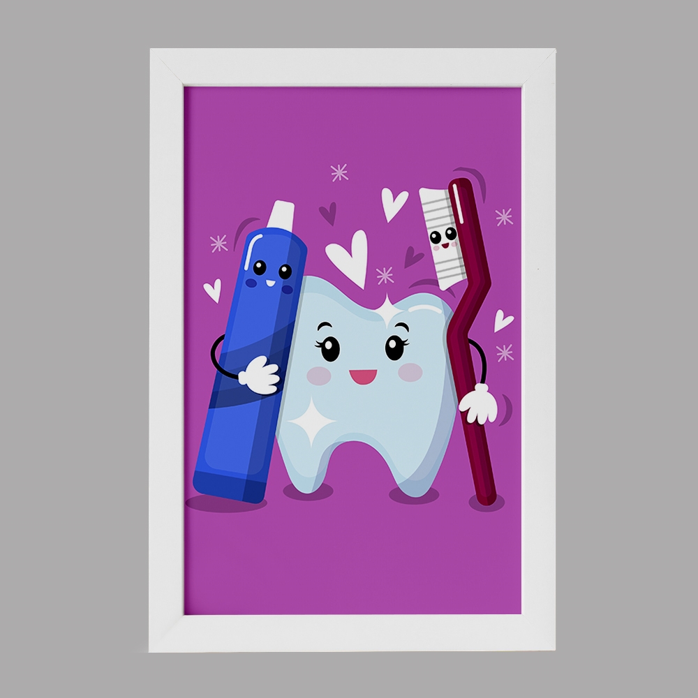 تابلو یا قاب عکس دندان و دندان پزشکی کودکانه خندالو در ابعاد مختلف با استفاده از بهترین برند پروفیل پی وی سی دو سانتی متری بسیار مرغوب، تولید شده اند و در مونتاژ و نصب آنها نهایت دقت در قرارگیری هر چه دقیق تر لبه ها به یکدیگر صورت گرفته است. همچنین در پشت قاب ها گیره ای برای اتصال راحت به دیوار تعبیه شده است.