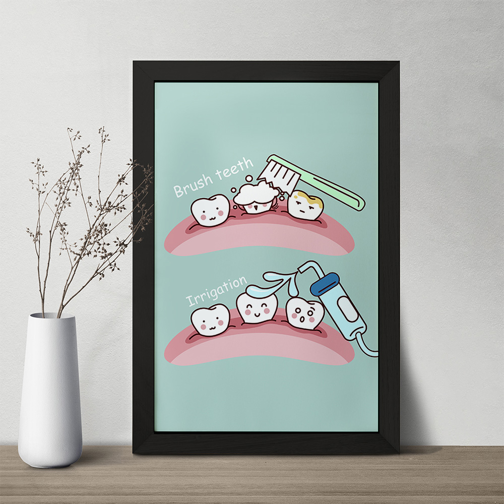 تابلو یا قاب عکس دندان و دندان پزشکی کودکانه خندالو در ابعاد مختلف با استفاده از بهترین برند پروفیل پی وی سی دو سانتی متری بسیار مرغوب، تولید شده اند و در مونتاژ و نصب آنها نهایت دقت در قرارگیری هر چه دقیق تر لبه ها به یکدیگر صورت گرفته است. همچنین در پشت قاب ها گیره ای برای اتصال راحت به دیوار تعبیه شده است.