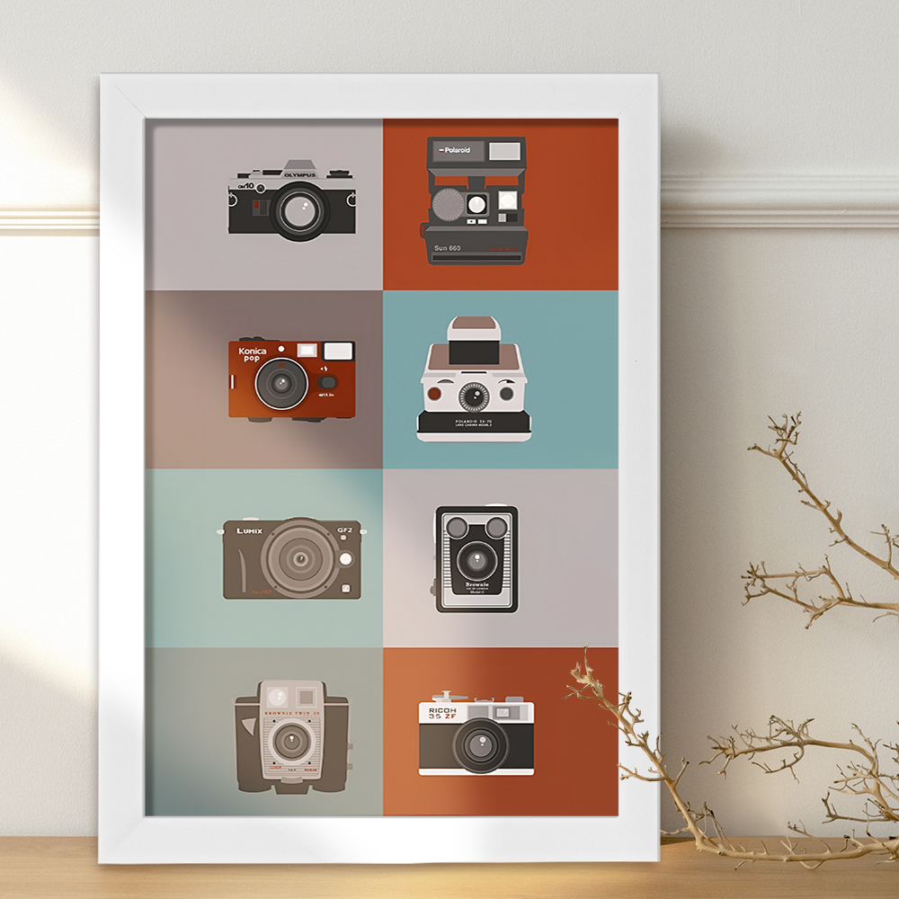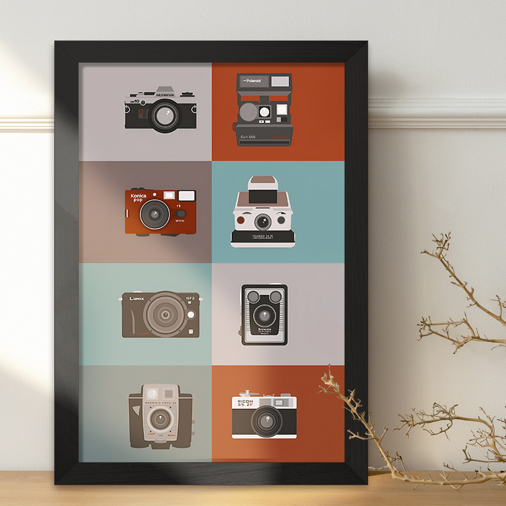 تابلو یا قاب عکس دوربین عکاسی خندالو در ابعاد مختلف با استفاده از بهترین برند پروفیل پی وی سی دو سانتی متری بسیار مرغوب، تولید شده اند و در مونتاژ و نصب آنها نهایت دقت در قرارگیری هر چه دقیق تر لبه ها به یکدیگر صورت گرفته است. همچنین در پشت قاب ها گیره ای برای اتصال راحت به دیوار تعبیه شده است.