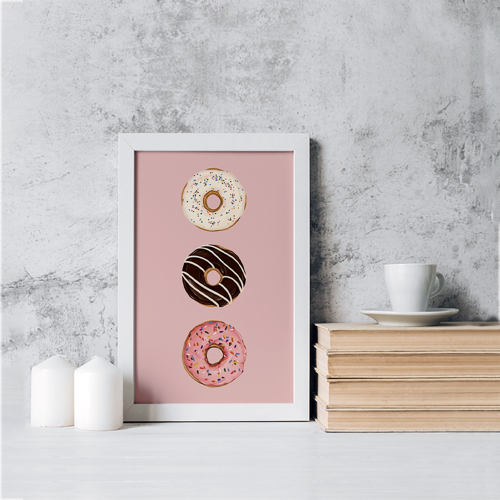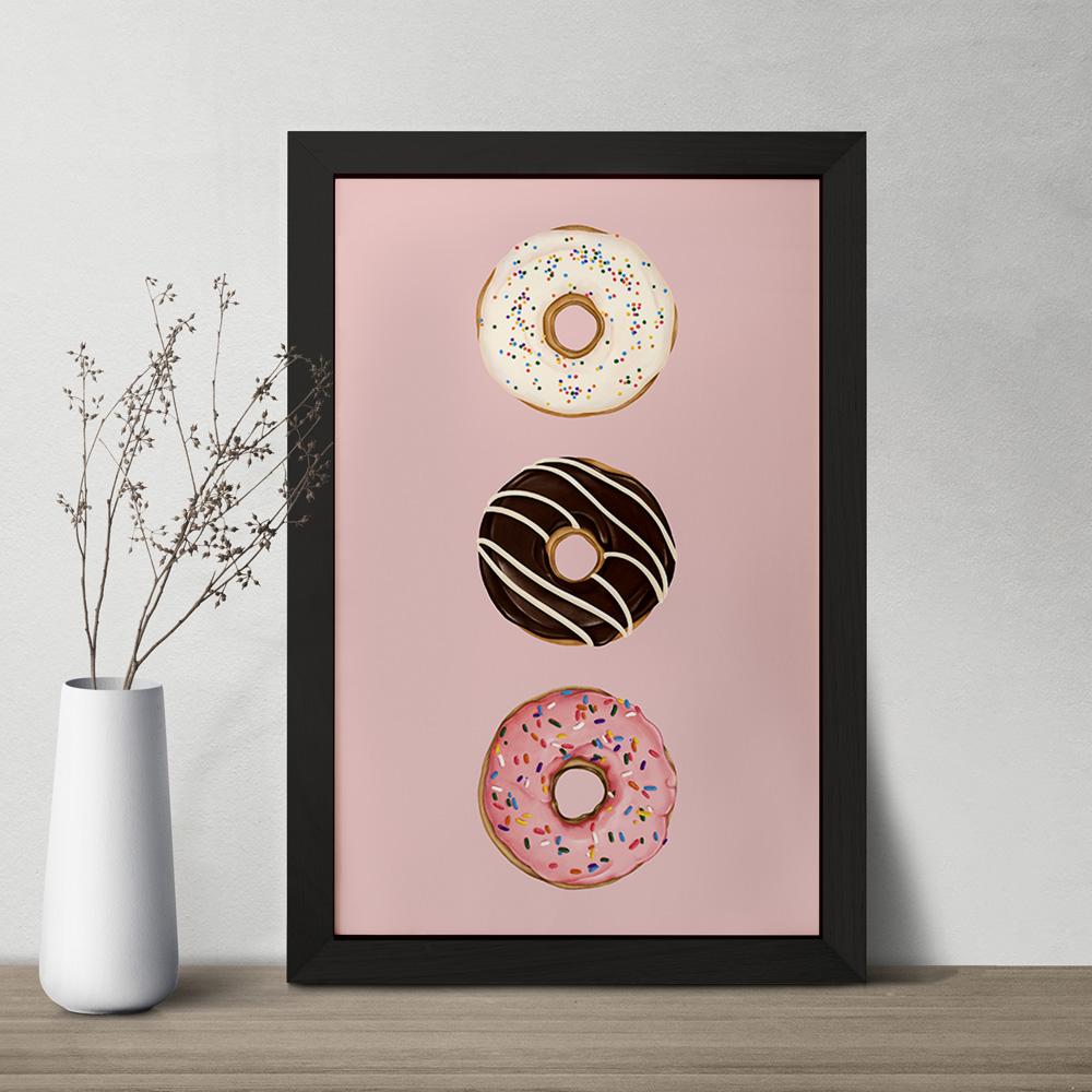 تابلو یا قاب عکس دونات خندالو در ابعاد مختلف با استفاده از بهترین برند پروفیل پی وی سی دو سانتی متری بسیار مرغوب، تولید شده اند و در مونتاژ و نصب آنها نهایت دقت در قرارگیری هر چه دقیق تر لبه ها به یکدیگر صورت گرفته است. همچنین در پشت قاب ها گیره ای برای اتصال راحت به دیوار تعبیه شده است. چاپ طرح تابلوی دونات با بالاترین کیفیت بوسیله چاپگرهای دیجیتال شش رنگ و کاغذ با کیفیت عکاسی انجام شده و بر روی آن شیشه ای با کیفیت و شفاف در سطح قاب قرار گرفته که از کاغذ عکس محافظت میکند. بسته بندی تابلوها جعبه های مقاوم و محکمی بوده که علاوه بر محافظتی که از بدنه قاب می کند، ظاهر جذابی دارد و تابلوی دونات را بدل به محصولی مناسب هدیه کرده است. تابلوهای خندالو با تنوع طرحی بسیار بالا شامل تابلو های دکوراتیو قابل استفاده در اتاق کودک، محل کار و منازل می باشد که سلیقه هر مخاطبی را پوشش می دهد، ضمن اینکه امکان تعویض عکس موجود در قاب وجود داشته و می توان عکس های خانوادگی و … را نیز در آن قرار داد.