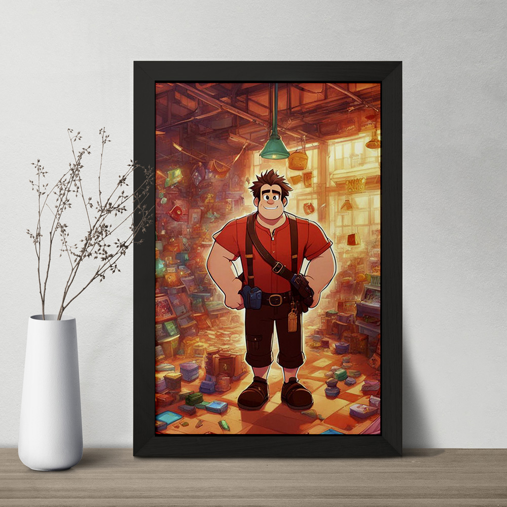تابلو یا قاب عکس رالف خرابکار خندالو در ابعاد مختلف با استفاده از بهترین برند پروفیل پی وی سی دو سانتی متری بسیار مرغوب، تولید شده اند و در مونتاژ و نصب آنها نهایت دقت در قرارگیری هر چه دقیق تر لبه ها به یکدیگر صورت گرفته است. همچنین در پشت قاب ها گیره ای برای اتصال راحت به دیوار تعبیه شده است.