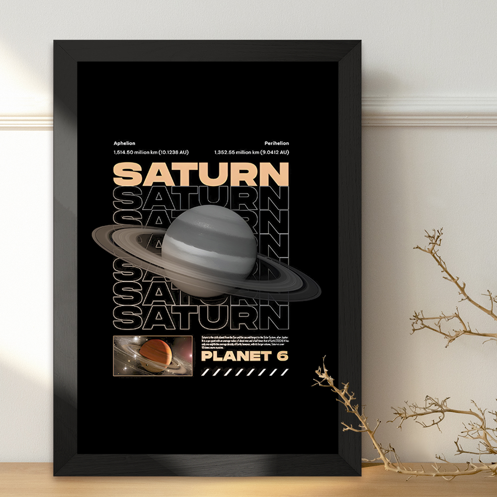 تابلو یا قاب عکس زحل (Saturn) خندالو در ابعاد مختلف با استفاده از بهترین برند پروفیل پی وی سی دو سانتی متری بسیار مرغوب، تولید شده اند و در مونتاژ و نصب آنها نهایت دقت در قرارگیری هر چه دقیق تر لبه ها به یکدیگر صورت گرفته است. همچنین در پشت قاب ها گیره ای برای اتصال راحت به دیوار تعبیه شده است. چاپ طرح تابلوی زحل (Saturn) با بالاترین کیفیت بوسیله چاپگرهای دیجیتال شش رنگ و کاغذ با کیفیت عکاسی انجام شده و بر روی آن شیشه ای با کیفیت و شفاف در سطح قاب قرار گرفته که از کاغذ عکس محافظت میکند. بسته بندی تابلوها جعبه های مقاوم و محکمی بوده که علاوه بر محافظتی که از بدنه قاب می کند، ظاهر جذابی دارد و تابلوی زحل (Saturn) را بدل به محصولی مناسب هدیه کرده است. تابلوهای خندالو با تنوع طرحی بسیار بالا شامل تابلو های دکوراتیو قابل استفاده در اتاق کودک، محل کار و منازل می باشد که سلیقه هر مخاطبی را پوشش می دهد، ضمن اینکه امکان تعویض عکس موجود در قاب وجود داشته و می توان عکس های خانوادگی و … را نیز در آن قرار داد.