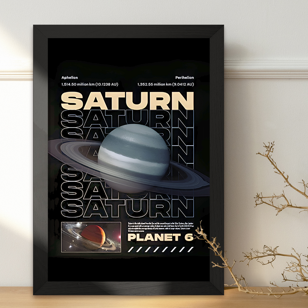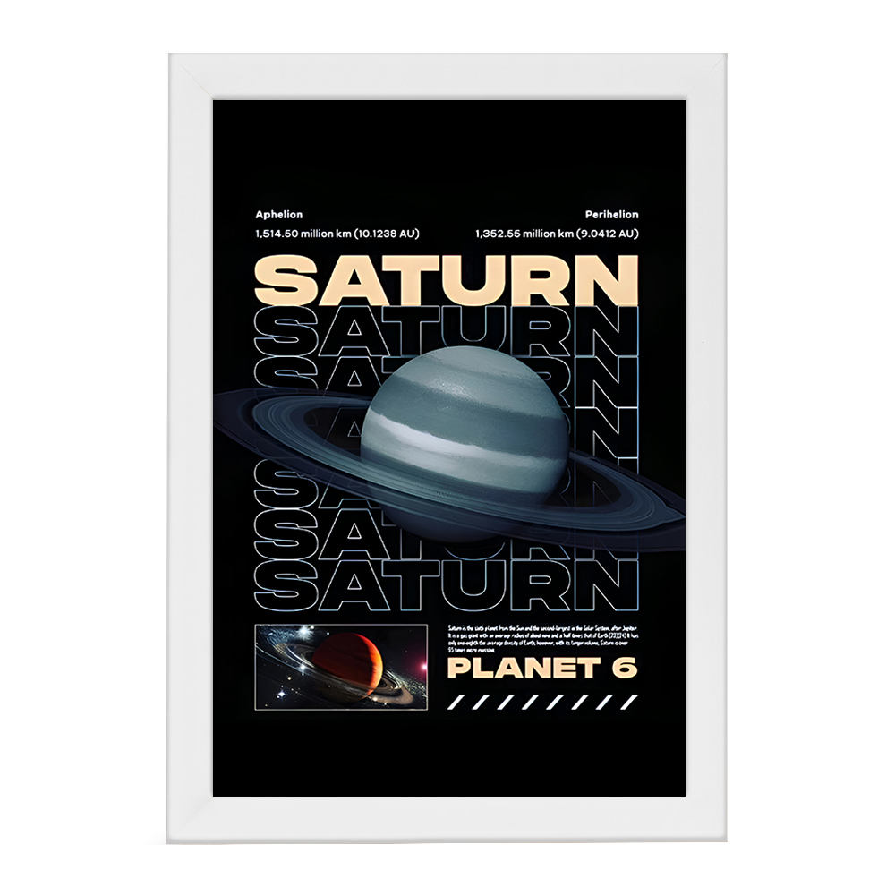 تابلو یا قاب عکس زحل (Saturn) خندالو در ابعاد مختلف با استفاده از بهترین برند پروفیل پی وی سی دو سانتی متری بسیار مرغوب، تولید شده اند و در مونتاژ و نصب آنها نهایت دقت در قرارگیری هر چه دقیق تر لبه ها به یکدیگر صورت گرفته است. همچنین در پشت قاب ها گیره ای برای اتصال راحت به دیوار تعبیه شده است. چاپ طرح تابلوی زحل (Saturn) با بالاترین کیفیت بوسیله چاپگرهای دیجیتال شش رنگ و کاغذ با کیفیت عکاسی انجام شده و بر روی آن شیشه ای با کیفیت و شفاف در سطح قاب قرار گرفته که از کاغذ عکس محافظت میکند. بسته بندی تابلوها جعبه های مقاوم و محکمی بوده که علاوه بر محافظتی که از بدنه قاب می کند، ظاهر جذابی دارد و تابلوی زحل (Saturn) را بدل به محصولی مناسب هدیه کرده است. تابلوهای خندالو با تنوع طرحی بسیار بالا شامل تابلو های دکوراتیو قابل استفاده در اتاق کودک، محل کار و منازل می باشد که سلیقه هر مخاطبی را پوشش می دهد، ضمن اینکه امکان تعویض عکس موجود در قاب وجود داشته و می توان عکس های خانوادگی و … را نیز در آن قرار داد.