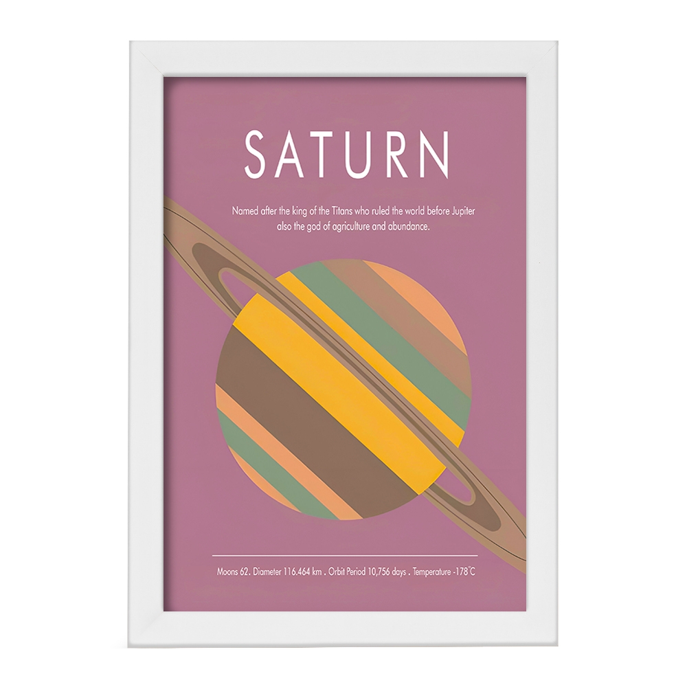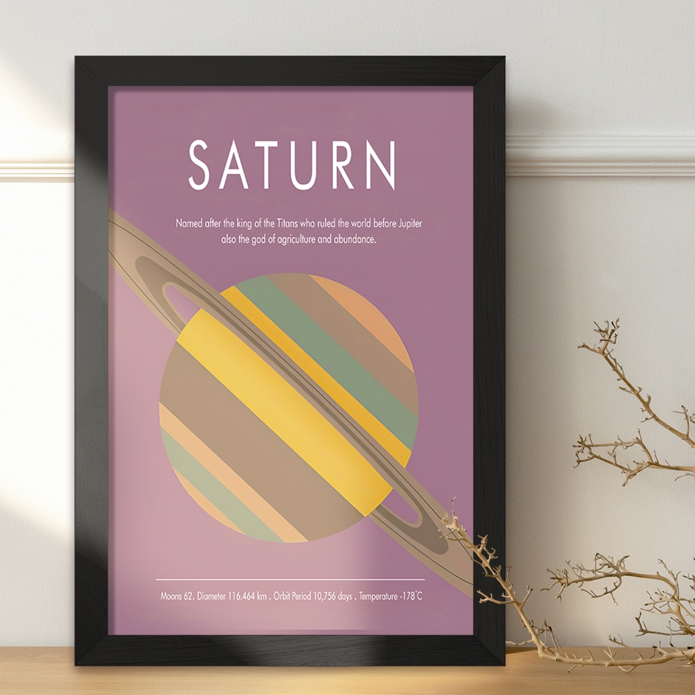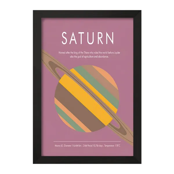 تابلو یا قاب عکس زحل (Saturn) خندالو در ابعاد مختلف با استفاده از بهترین برند پروفیل پی وی سی دو سانتی متری بسیار مرغوب، تولید شده اند و در مونتاژ و نصب آنها نهایت دقت در قرارگیری هر چه دقیق تر لبه ها به یکدیگر صورت گرفته است. همچنین در پشت قاب ها گیره ای برای اتصال راحت به دیوار تعبیه شده است. چاپ طرح تابلوی زحل (Saturn) با بالاترین کیفیت بوسیله چاپگرهای دیجیتال شش رنگ و کاغذ با کیفیت عکاسی انجام شده و بر روی آن شیشه ای با کیفیت و شفاف در سطح قاب قرار گرفته که از کاغذ عکس محافظت میکند. بسته بندی تابلوها جعبه های مقاوم و محکمی بوده که علاوه بر محافظتی که از بدنه قاب می کند، ظاهر جذابی دارد و تابلوی زحل (Saturn) را بدل به محصولی مناسب هدیه کرده است. تابلوهای خندالو با تنوع طرحی بسیار بالا شامل تابلو های دکوراتیو قابل استفاده در اتاق کودک، محل کار و منازل می باشد که سلیقه هر مخاطبی را پوشش می دهد، ضمن اینکه امکان تعویض عکس موجود در قاب وجود داشته و می توان عکس های خانوادگی و … را نیز در آن قرار داد.