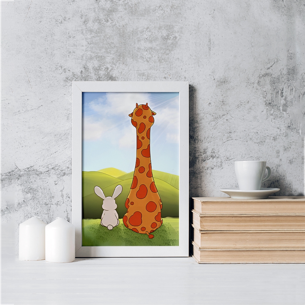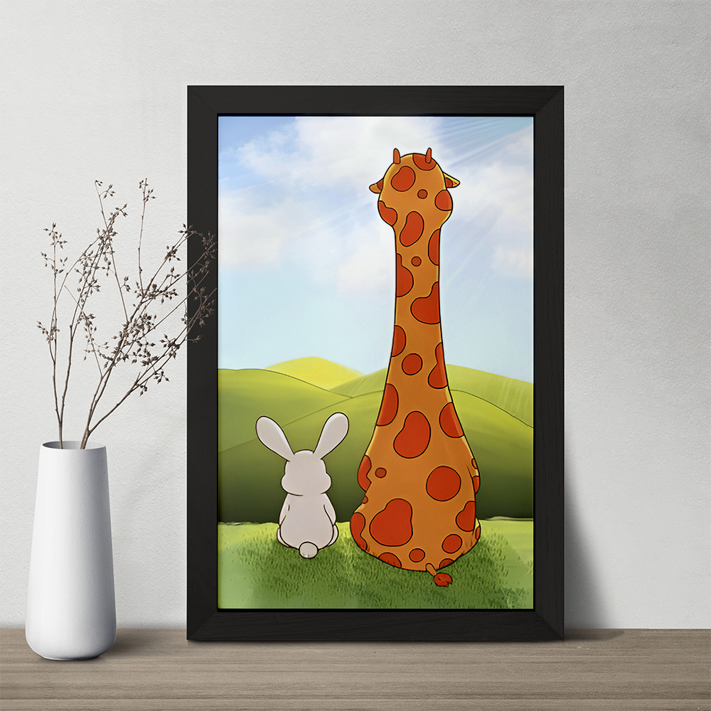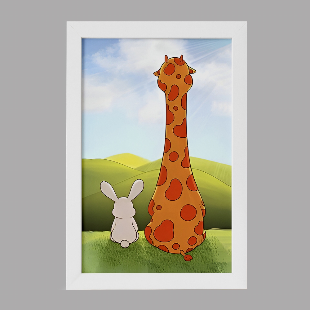 تابلو یا قاب عکس زرافه و خرگوش خندالو در ابعاد مختلف با استفاده از بهترین برند پروفیل پی وی سی دو سانتی متری بسیار مرغوب، تولید شده اند و در مونتاژ و نصب آنها نهایت دقت در قرارگیری هر چه دقیق تر لبه ها به یکدیگر صورت گرفته است. همچنین در پشت قاب ها گیره ای برای اتصال راحت به دیوار تعبیه شده است. چاپ طرح تابلوی زرافه و خرگوش با بالاترین کیفیت بوسیله چاپگرهای دیجیتال شش رنگ و کاغذ با کیفیت عکاسی انجام شده و بر روی آن شیشه ای با کیفیت و شفاف در سطح قاب قرار گرفته که از کاغذ عکس محافظت میکند. بسته بندی تابلوها جعبه های مقاوم و محکمی بوده که علاوه بر محافظتی که از بدنه قاب می کند، ظاهر جذابی دارد و تابلوی زرافه و خرگوش را بدل به محصولی مناسب هدیه کرده است. تابلوهای خندالو با تنوع طرحی بسیار بالا شامل تابلو های دکوراتیو قابل استفاده در اتاق کودک، محل کار و منازل می باشد که سلیقه هر مخاطبی را پوشش می دهد، ضمن اینکه امکان تعویض عکس موجود در قاب وجود داشته و می توان عکس های خانوادگی و … را نیز در آن قرار داد.