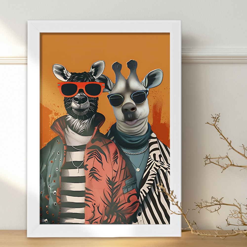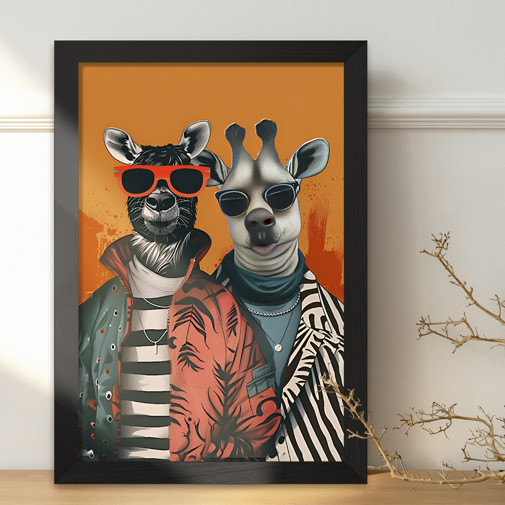 تابلو یا قاب عکس زرافه و لامای بامزه خندالو در ابعاد مختلف با استفاده از بهترین برند پروفیل پی وی سی دو سانتی متری بسیار مرغوب، تولید شده اند و در مونتاژ و نصب آنها نهایت دقت در قرارگیری هر چه دقیق تر لبه ها به یکدیگر صورت گرفته است. همچنین در پشت قاب ها گیره ای برای اتصال راحت به دیوار تعبیه شده است. چاپ طرح تابلوی زرافه و لامای بامزه با بالاترین کیفیت بوسیله چاپگرهای دیجیتال شش رنگ و کاغذ با کیفیت عکاسی انجام شده و بر روی آن شیشه ای با کیفیت و شفاف در سطح قاب قرار گرفته که از کاغذ عکس محافظت میکند. بسته بندی تابلوها جعبه های مقاوم و محکمی بوده که علاوه بر محافظتی که از بدنه قاب می کند، ظاهر جذابی دارد و تابلوی زرافه و لامای بامزه را بدل به محصولی مناسب هدیه کرده است. تابلوهای خندالو با تنوع طرحی بسیار بالا شامل تابلو های دکوراتیو قابل استفاده در اتاق کودک، محل کار و منازل می باشد که سلیقه هر مخاطبی را پوشش می دهد، ضمن اینکه امکان تعویض عکس موجود در قاب وجود داشته و می توان عکس های خانوادگی و … را نیز در آن قرار داد.
