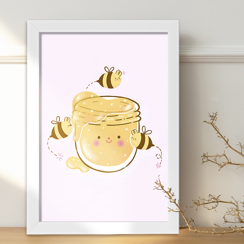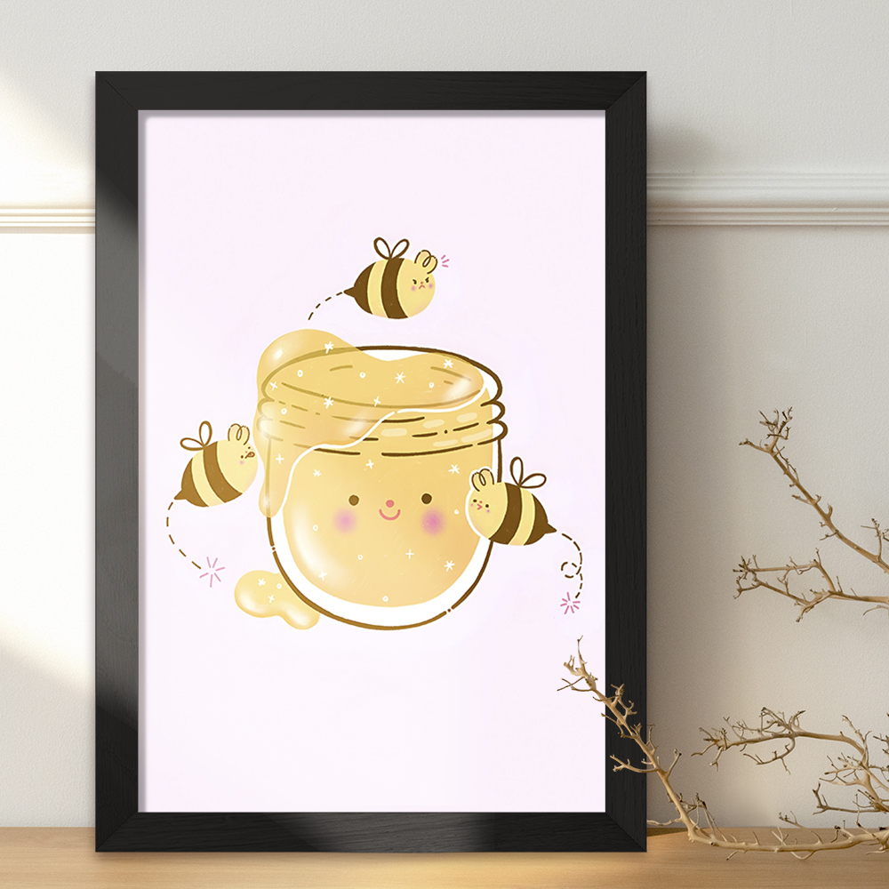 تابلو یا قاب عکس زنبور و عسل خندالو در ابعاد مختلف با استفاده از بهترین برند پروفیل پی وی سی دو سانتی متری بسیار مرغوب، تولید شده اند و در مونتاژ و نصب آنها نهایت دقت در قرارگیری هر چه دقیق تر لبه ها به یکدیگر صورت گرفته است. همچنین در پشت قاب ها گیره ای برای اتصال راحت به دیوار تعبیه شده است. چاپ طرح تابلوی زنبور و عسل با بالاترین کیفیت بوسیله چاپگرهای دیجیتال شش رنگ و کاغذ با کیفیت عکاسی انجام شده و بر روی آن شیشه ای با کیفیت و شفاف در سطح قاب قرار گرفته که از کاغذ عکس محافظت میکند. بسته بندی تابلوها جعبه های مقاوم و محکمی بوده که علاوه بر محافظتی که از بدنه قاب می کند، ظاهر جذابی دارد و تابلوی زنبور و عسل را بدل به محصولی مناسب هدیه کرده است. تابلوهای خندالو با تنوع طرحی بسیار بالا شامل تابلو های دکوراتیو قابل استفاده در اتاق کودک، محل کار و منازل می باشد که سلیقه هر مخاطبی را پوشش می دهد، ضمن اینکه امکان تعویض عکس موجود در قاب وجود داشته و می توان عکس های خانوادگی و … را نیز در آن قرار داد.