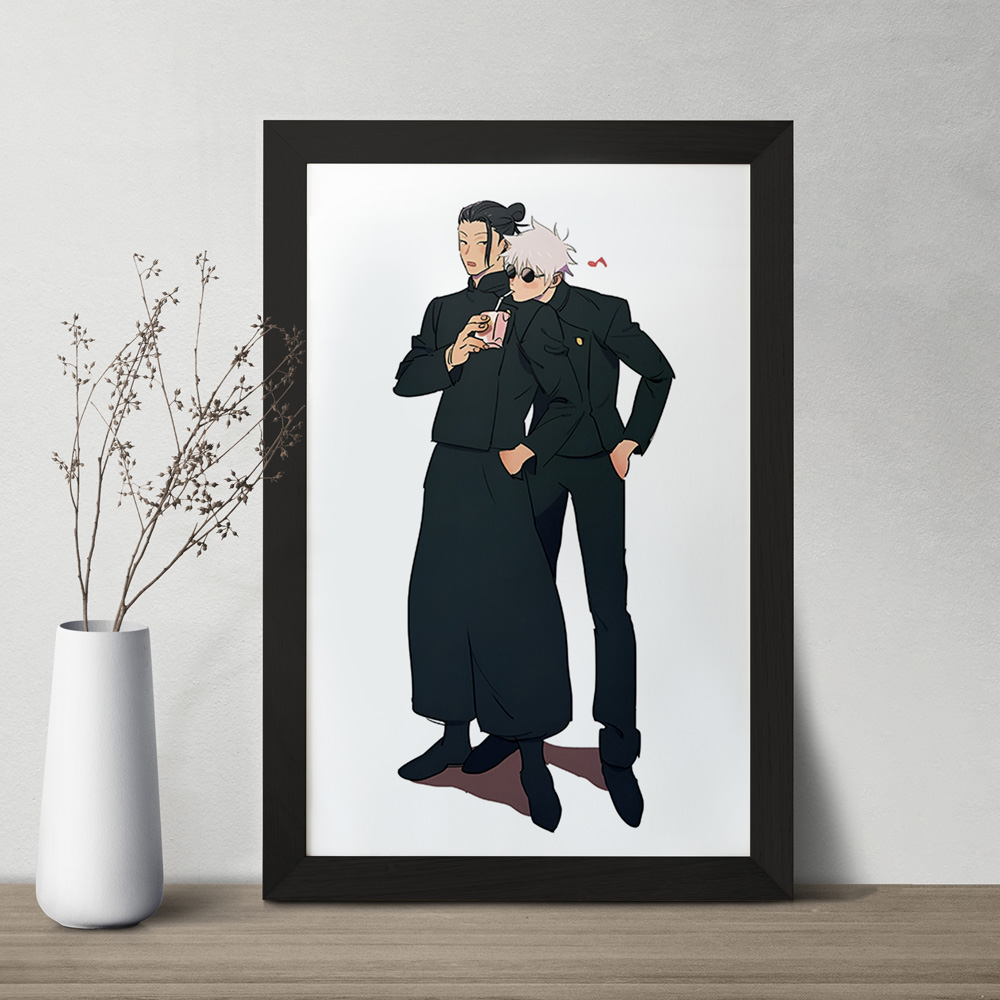 تابلو یا قاب عکس ساتورو و سوگورو انیمه جوجوتسو کایسن خندالو در ابعاد مختلف با استفاده از بهترین برند پروفیل پی وی سی دو سانتی متری بسیار مرغوب، تولید شده اند و در مونتاژ و نصب آنها نهایت دقت در قرارگیری هر چه دقیق تر لبه ها به یکدیگر صورت گرفته است. همچنین در پشت قاب ها گیره ای برای اتصال راحت به دیوار تعبیه شده است. چاپ طرح تابلوی ساتورو و سوگورو انیمه جوجوتسو کایسن با بالاترین کیفیت بوسیله چاپگرهای دیجیتال شش رنگ و کاغذ با کیفیت عکاسی انجام شده و بر روی آن شیشه ای با کیفیت و شفاف در سطح قاب قرار گرفته که از کاغذ عکس محافظت میکند. بسته بندی تابلوها جعبه های مقاوم و محکمی بوده که علاوه بر محافظتی که از بدنه قاب می کند، ظاهر جذابی دارد و تابلوی ساتورو و سوگورو انیمه جوجوتسو کایسن را بدل به محصولی مناسب هدیه کرده است. تابلوهای خندالو با تنوع طرحی بسیار بالا شامل تابلو های دکوراتیو قابل استفاده در اتاق کودک، محل کار و منازل می باشد که سلیقه هر مخاطبی را پوشش می دهد، ضمن اینکه امکان تعویض عکس موجود در قاب وجود داشته و می توان عکس های خانوادگی و … را نیز در آن قرار داد.