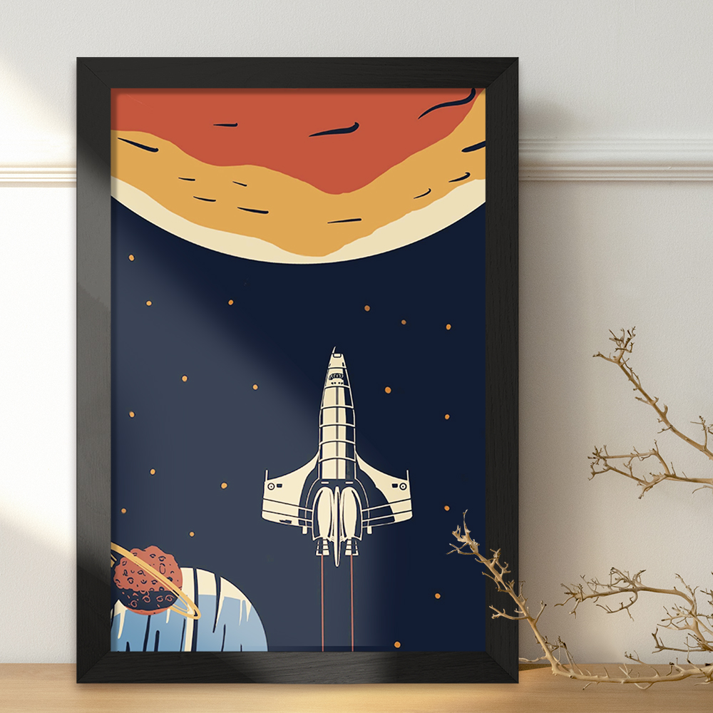 تابلو یا قاب عکس سفینه فضایی خندالو در ابعاد مختلف با استفاده از بهترین برند پروفیل پی وی سی دو سانتی متری بسیار مرغوب، تولید شده اند و در مونتاژ و نصب آنها نهایت دقت در قرارگیری هر چه دقیق تر لبه ها به یکدیگر صورت گرفته است. همچنین در پشت قاب ها گیره ای برای اتصال راحت به دیوار تعبیه شده است. چاپ طرح تابلوی سفینه فضایی با بالاترین کیفیت بوسیله چاپگرهای دیجیتال شش رنگ و کاغذ با کیفیت عکاسی انجام شده و بر روی آن شیشه ای با کیفیت و شفاف در سطح قاب قرار گرفته که از کاغذ عکس محافظت میکند. بسته بندی تابلوها جعبه های مقاوم و محکمی بوده که علاوه بر محافظتی که از بدنه قاب می کند، ظاهر جذابی دارد و تابلوی سفینه فضایی را بدل به محصولی مناسب هدیه کرده است. تابلوهای خندالو با تنوع طرحی بسیار بالا شامل تابلو های دکوراتیو قابل استفاده در اتاق کودک، محل کار و منازل می باشد که سلیقه هر مخاطبی را پوشش می دهد، ضمن اینکه امکان تعویض عکس موجود در قاب وجود داشته و می توان عکس های خانوادگی و … را نیز در آن قرار داد.