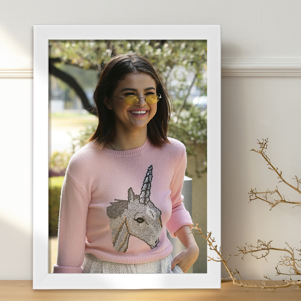 تابلو یا قاب عکس سلنا گومز Selena Gomez خندالو در ابعاد مختلف با استفاده از بهترین برند پروفیل پی وی سی دو سانتی متری بسیار مرغوب، تولید شده اند و در مونتاژ و نصب آنها نهایت دقت در قرارگیری هر چه دقیق تر لبه ها به یکدیگر صورت گرفته است. همچنین در پشت قاب ها گیره ای برای اتصال راحت به دیوار تعبیه شده است.