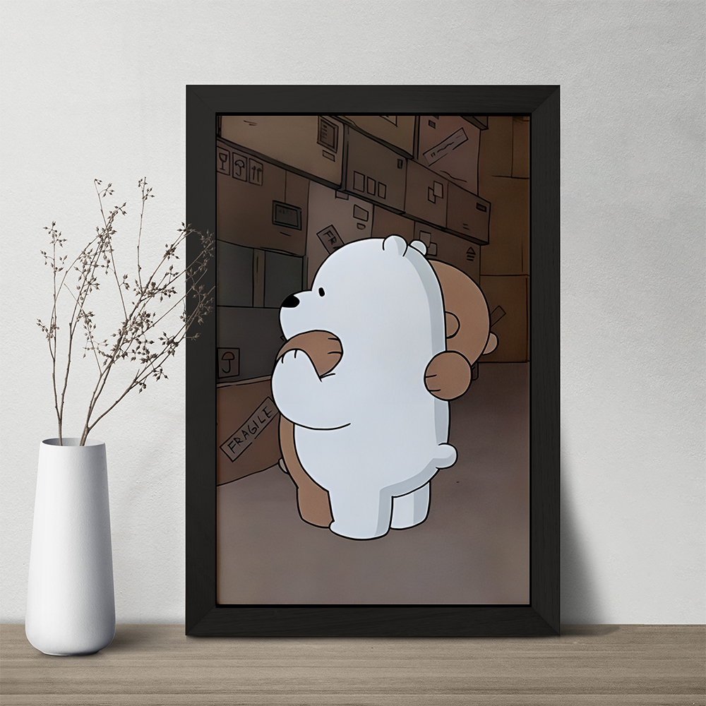 تابلو یا قاب عکس سه خرس کله پوک خندالو در ابعاد مختلف با استفاده از بهترین برند پروفیل پی وی سی دو سانتی متری بسیار مرغوب، تولید شده اند و در مونتاژ و نصب آنها نهایت دقت در قرارگیری هر چه دقیق تر لبه ها به یکدیگر صورت گرفته است. همچنین در پشت قاب ها گیره ای برای اتصال راحت به دیوار تعبیه شده است.