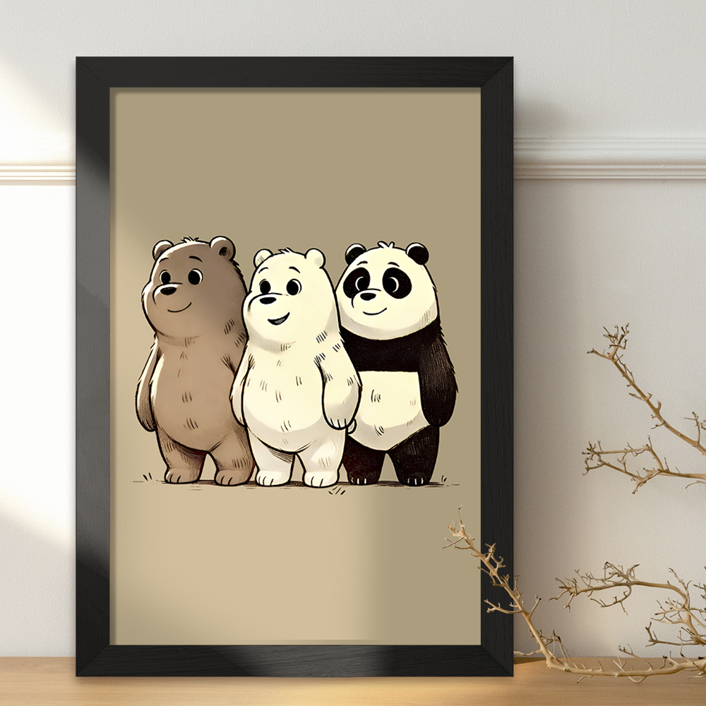 تابلو یا قاب عکس سه خرس کله پوک خندالو در ابعاد مختلف با استفاده از بهترین برند پروفیل پی وی سی دو سانتی متری بسیار مرغوب، تولید شده اند و در مونتاژ و نصب آنها نهایت دقت در قرارگیری هر چه دقیق تر لبه ها به یکدیگر صورت گرفته است. همچنین در پشت قاب ها گیره ای برای اتصال راحت به دیوار تعبیه شده است.