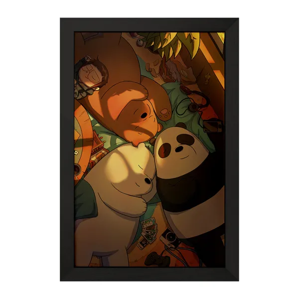 تابلو یا قاب عکس سه خرس کله پوک خندالو در ابعاد مختلف با استفاده از بهترین برند پروفیل پی وی سی دو سانتی متری بسیار مرغوب، تولید شده اند و در مونتاژ و نصب آنها نهایت دقت در قرارگیری هر چه دقیق تر لبه ها به یکدیگر صورت گرفته است. همچنین در پشت قاب ها گیره ای برای اتصال راحت به دیوار تعبیه شده است.