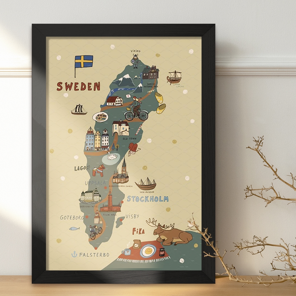 تابلو یا قاب عکس سوئد (Sweden) خندالو در ابعاد مختلف با استفاده از بهترین برند پروفیل پی وی سی دو سانتی متری بسیار مرغوب، تولید شده اند و در مونتاژ و نصب آنها نهایت دقت در قرارگیری هر چه دقیق تر لبه ها به یکدیگر صورت گرفته است. همچنین در پشت قاب ها گیره ای برای اتصال راحت به دیوار تعبیه شده است. چاپ طرح تابلوی سوئد (Sweden) با بالاترین کیفیت بوسیله چاپگرهای دیجیتال شش رنگ و کاغذ با کیفیت عکاسی انجام شده و بر روی آن شیشه ای با کیفیت و شفاف در سطح قاب قرار گرفته که از کاغذ عکس محافظت میکند. بسته بندی تابلوها جعبه های مقاوم و محکمی بوده که علاوه بر محافظتی که از بدنه قاب می کند، ظاهر جذابی دارد و تابلوی سوئد (Sweden) را بدل به محصولی مناسب هدیه کرده است. تابلوهای خندالو با تنوع طرحی بسیار بالا شامل تابلو های دکوراتیو قابل استفاده در اتاق کودک، محل کار و منازل می باشد که سلیقه هر مخاطبی را پوشش می دهد، ضمن اینکه امکان تعویض عکس موجود در قاب وجود داشته و می توان عکس های خانوادگی و … را نیز در آن قرار داد.