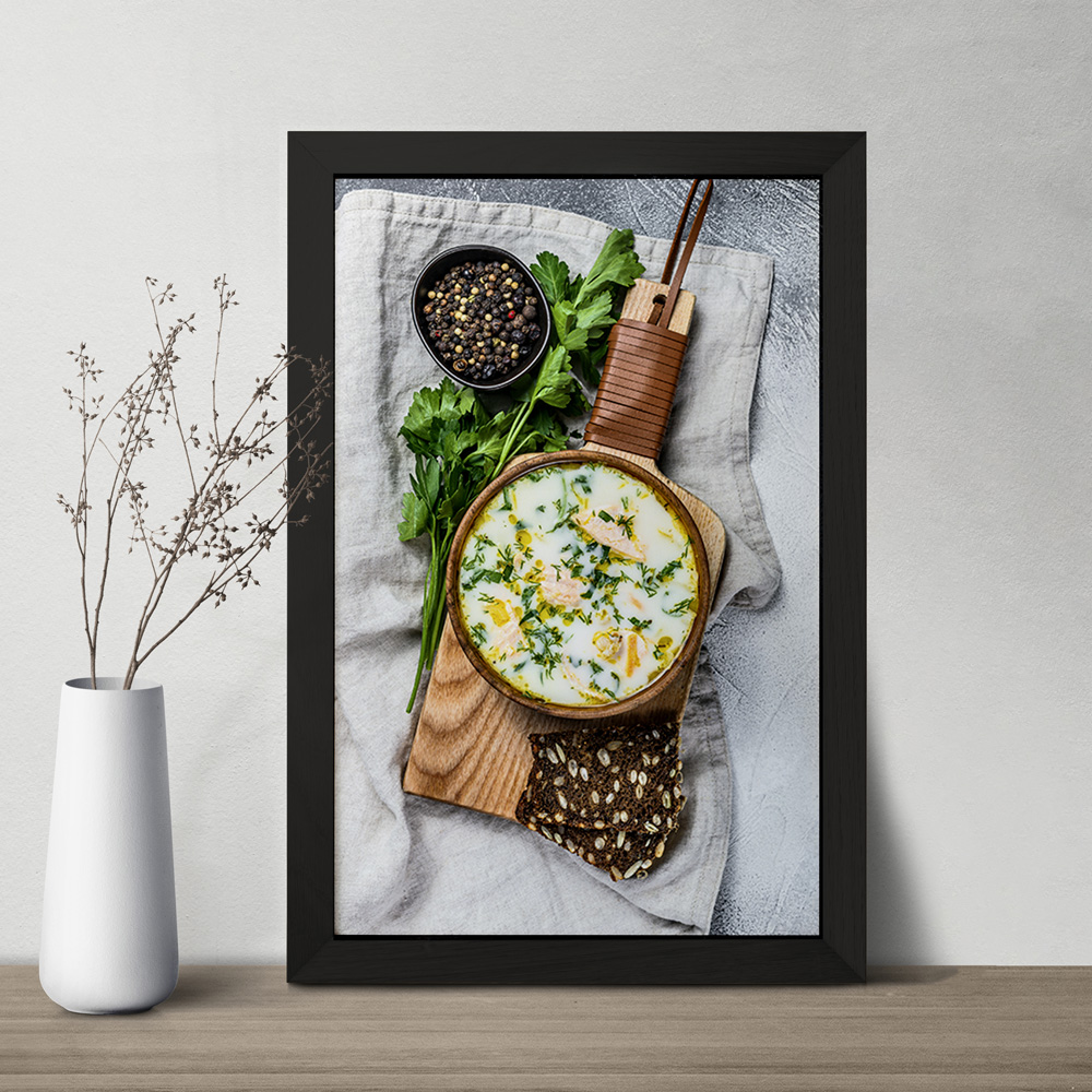 تابلو یا قاب عکس سوپ خندالو در ابعاد مختلف با استفاده از بهترین برند پروفیل پی وی سی دو سانتی متری بسیار مرغوب، تولید شده اند و در مونتاژ و نصب آنها نهایت دقت در قرارگیری هر چه دقیق تر لبه ها به یکدیگر صورت گرفته است. همچنین در پشت قاب ها گیره ای برای اتصال راحت به دیوار تعبیه شده است. چاپ طرح تابلوی سوپ با بالاترین کیفیت بوسیله چاپگرهای دیجیتال شش رنگ و کاغذ با کیفیت عکاسی انجام شده و بر روی آن شیشه ای با کیفیت و شفاف در سطح قاب قرار گرفته که از کاغذ عکس محافظت میکند. بسته بندی تابلوها جعبه های مقاوم و محکمی بوده که علاوه بر محافظتی که از بدنه قاب می کند، ظاهر جذابی دارد و تابلوی سوپ را بدل به محصولی مناسب هدیه کرده است. تابلوهای خندالو با تنوع طرحی بسیار بالا شامل تابلو های دکوراتیو قابل استفاده در اتاق کودک، محل کار و منازل می باشد که سلیقه هر مخاطبی را پوشش می دهد، ضمن اینکه امکان تعویض عکس موجود در قاب وجود داشته و می توان عکس های خانوادگی و … را نیز در آن قرار داد.