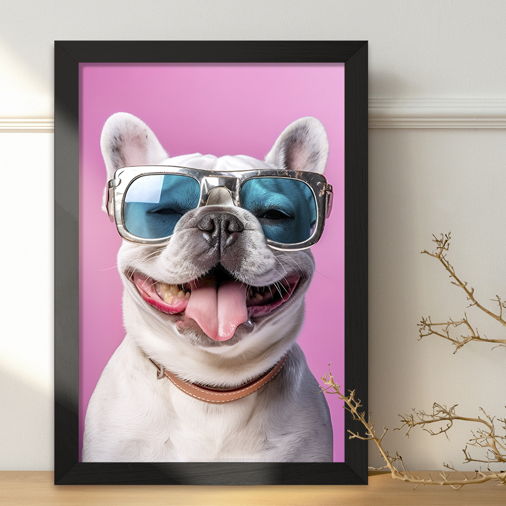 تابلو یا قاب عکس سگ بامزه خندالو در ابعاد مختلف با استفاده از بهترین برند پروفیل پی وی سی دو سانتی متری بسیار مرغوب، تولید شده اند و در مونتاژ و نصب آنها نهایت دقت در قرارگیری هر چه دقیق تر لبه ها به یکدیگر صورت گرفته است. همچنین در پشت قاب ها گیره ای برای اتصال راحت به دیوار تعبیه شده است.