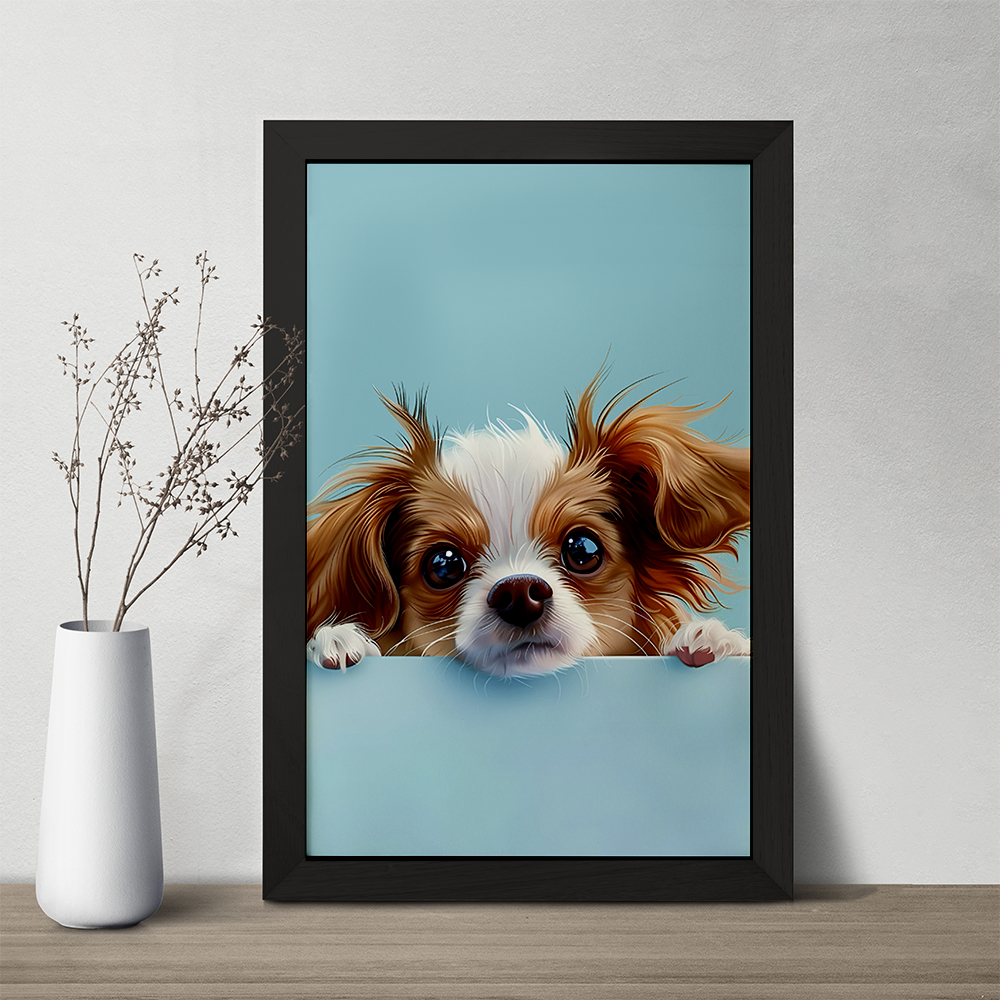 تابلو یا قاب عکس سگ بامزه خندالو در ابعاد مختلف با استفاده از بهترین برند پروفیل پی وی سی دو سانتی متری بسیار مرغوب، تولید شده اند و در مونتاژ و نصب آنها نهایت دقت در قرارگیری هر چه دقیق تر لبه ها به یکدیگر صورت گرفته است. همچنین در پشت قاب ها گیره ای برای اتصال راحت به دیوار تعبیه شده است.