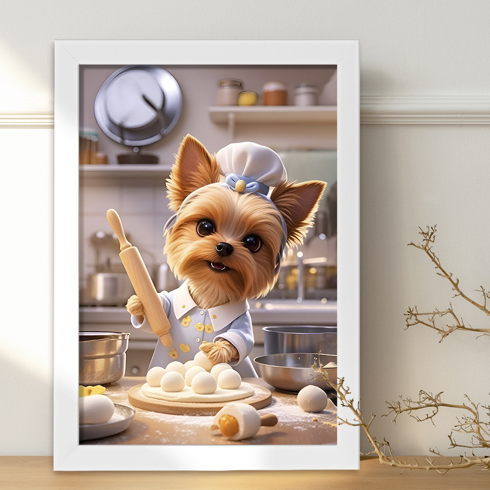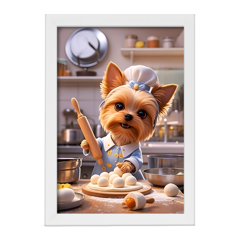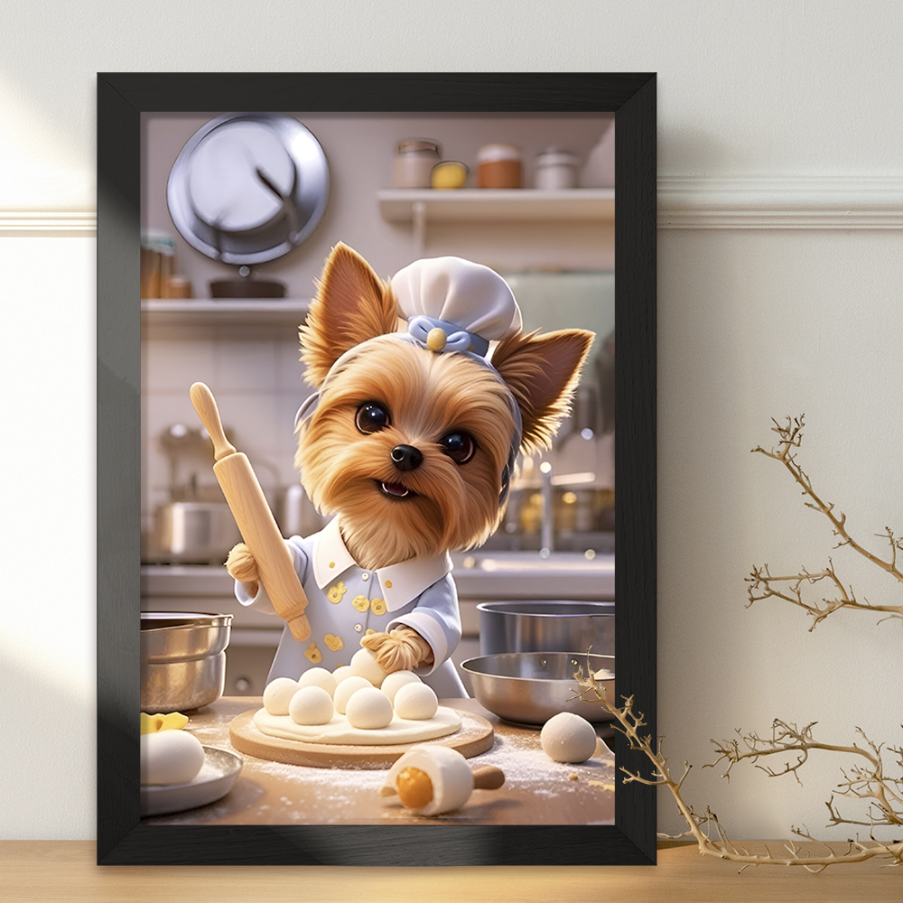 تابلو یا قاب عکس سگ شیرینی پز خندالو در ابعاد مختلف با استفاده از بهترین برند پروفیل پی وی سی دو سانتی متری بسیار مرغوب، تولید شده اند و در مونتاژ و نصب آنها نهایت دقت در قرارگیری هر چه دقیق تر لبه ها به یکدیگر صورت گرفته است. همچنین در پشت قاب ها گیره ای برای اتصال راحت به دیوار تعبیه شده است. چاپ طرح تابلوی سگ شیرینی پز با بالاترین کیفیت بوسیله چاپگرهای دیجیتال شش رنگ و کاغذ با کیفیت عکاسی انجام شده و بر روی آن شیشه ای با کیفیت و شفاف در سطح قاب قرار گرفته که از کاغذ عکس محافظت میکند. بسته بندی تابلوها جعبه های مقاوم و محکمی بوده که علاوه بر محافظتی که از بدنه قاب می کند، ظاهر جذابی دارد و تابلوی سگ شیرینی پز را بدل به محصولی مناسب هدیه کرده است. تابلوهای خندالو با تنوع طرحی بسیار بالا شامل تابلو های دکوراتیو قابل استفاده در اتاق کودک، محل کار و منازل می باشد که سلیقه هر مخاطبی را پوشش می دهد، ضمن اینکه امکان تعویض عکس موجود در قاب وجود داشته و می توان عکس های خانوادگی و … را نیز در آن قرار داد.