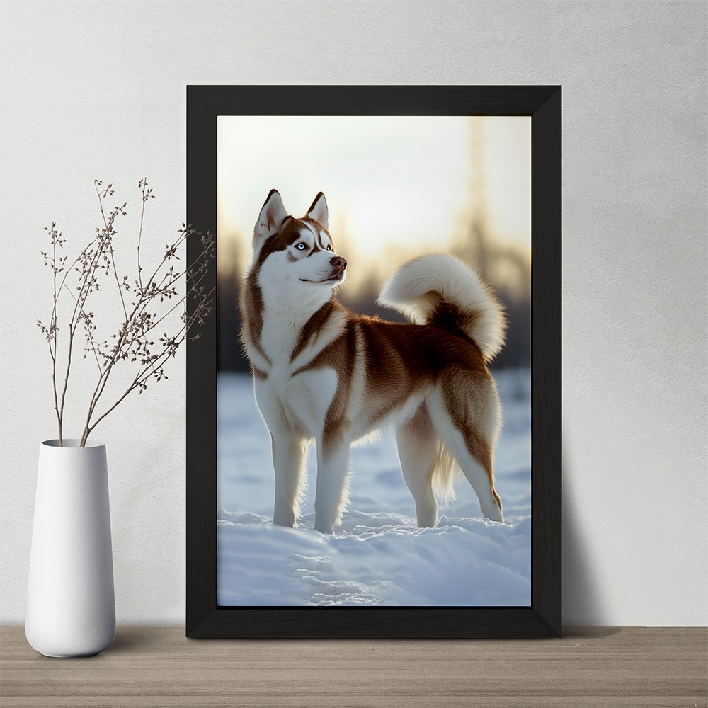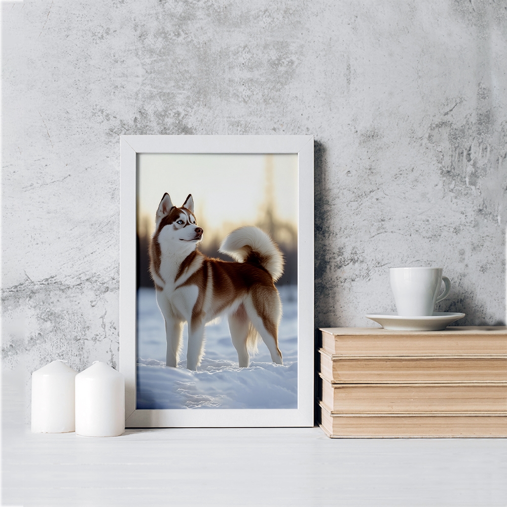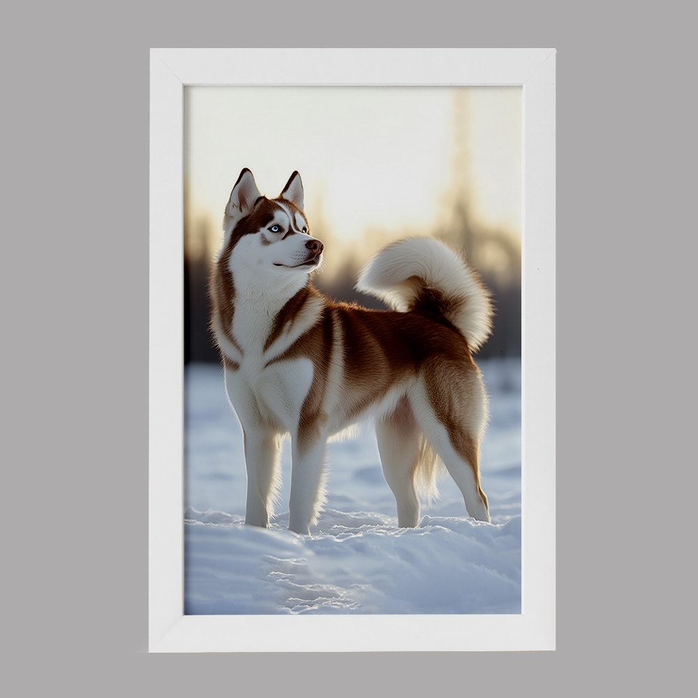 تابلو یا قاب عکس سگ هاسکی خندالو در ابعاد مختلف با استفاده از بهترین برند پروفیل پی وی سی دو سانتی متری بسیار مرغوب، تولید شده اند و در مونتاژ و نصب آنها نهایت دقت در قرارگیری هر چه دقیق تر لبه ها به یکدیگر صورت گرفته است. همچنین در پشت قاب ها گیره ای برای اتصال راحت به دیوار تعبیه شده است.