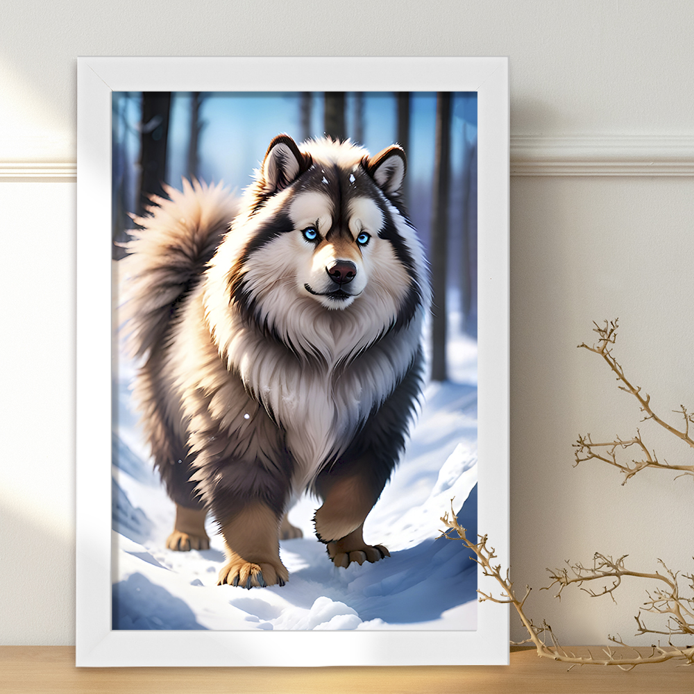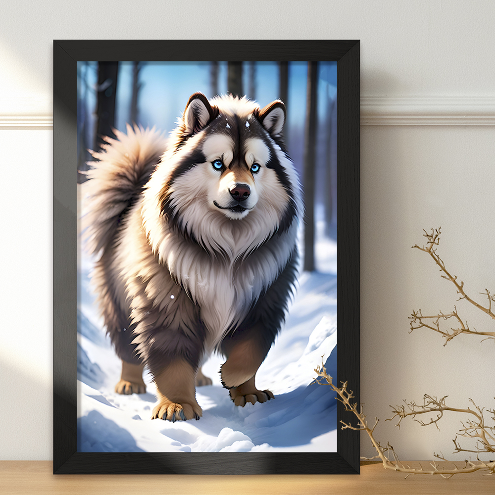 تابلو یا قاب عکس سگ هاسکی خندالو در ابعاد مختلف با استفاده از بهترین برند پروفیل پی وی سی دو سانتی متری بسیار مرغوب، تولید شده اند و در مونتاژ و نصب آنها نهایت دقت در قرارگیری هر چه دقیق تر لبه ها به یکدیگر صورت گرفته است. همچنین در پشت قاب ها گیره ای برای اتصال راحت به دیوار تعبیه شده است.