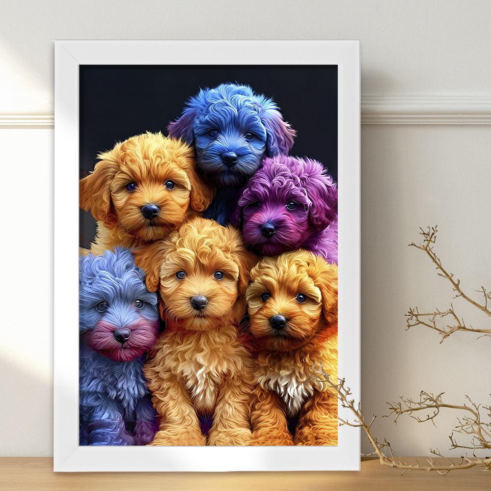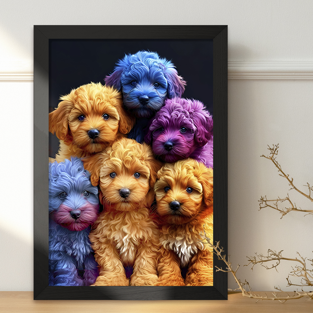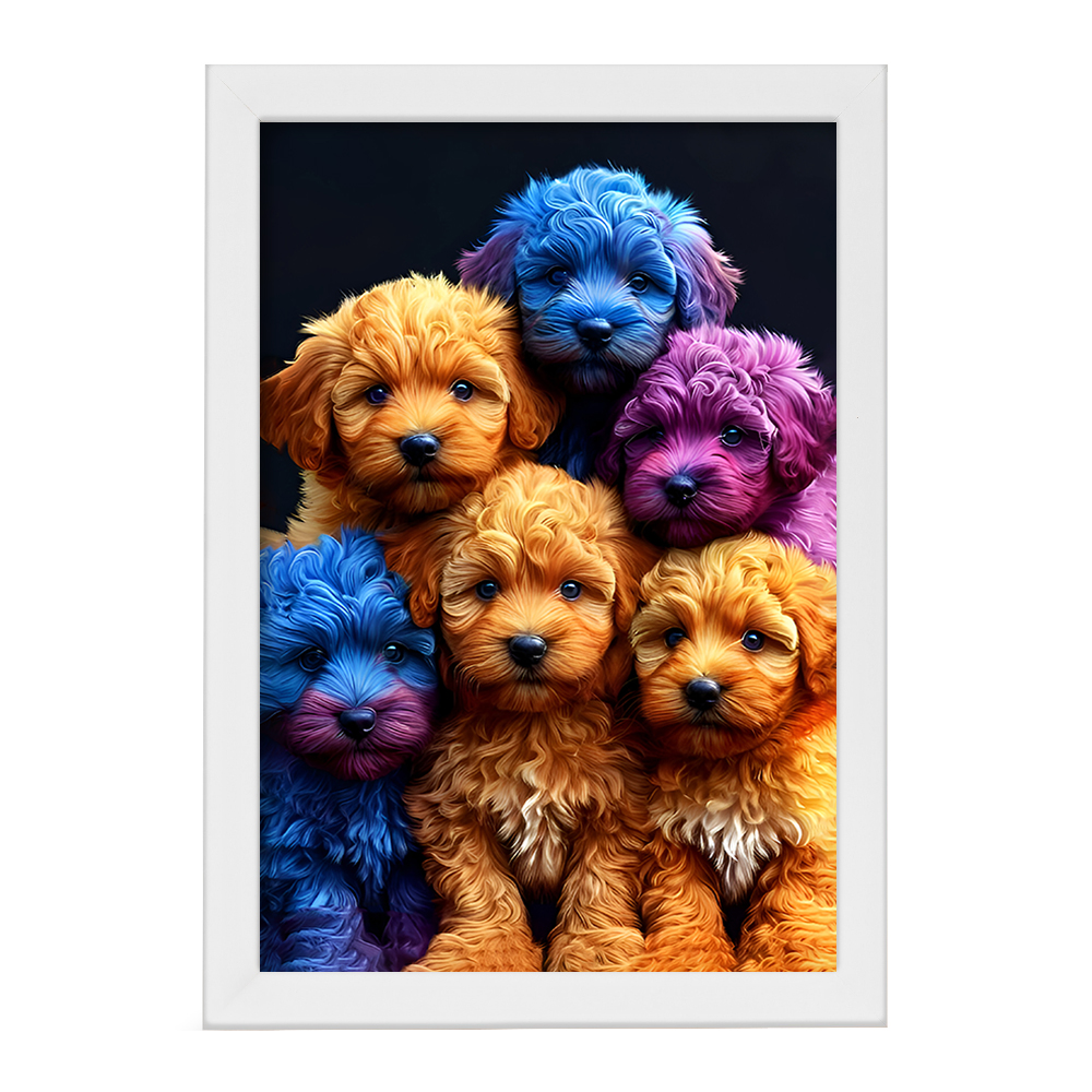 تابلو یا قاب عکس سگ های رنگی کیوت خندالو در ابعاد مختلف با استفاده از بهترین برند پروفیل پی وی سی دو سانتی متری بسیار مرغوب، تولید شده اند و در مونتاژ و نصب آنها نهایت دقت در قرارگیری هر چه دقیق تر لبه ها به یکدیگر صورت گرفته است. همچنین در پشت قاب ها گیره ای برای اتصال راحت به دیوار تعبیه شده است. چاپ طرح تابلوی سگ های رنگی کیوت با بالاترین کیفیت بوسیله چاپگرهای دیجیتال شش رنگ و کاغذ با کیفیت عکاسی انجام شده و بر روی آن شیشه ای با کیفیت و شفاف در سطح قاب قرار گرفته که از کاغذ عکس محافظت میکند. بسته بندی تابلوها جعبه های مقاوم و محکمی بوده که علاوه بر محافظتی که از بدنه قاب می کند، ظاهر جذابی دارد و تابلوی سگ های رنگی کیوت را بدل به محصولی مناسب هدیه کرده است. تابلوهای خندالو با تنوع طرحی بسیار بالا شامل تابلو های دکوراتیو قابل استفاده در اتاق کودک، محل کار و منازل می باشد که سلیقه هر مخاطبی را پوشش می دهد، ضمن اینکه امکان تعویض عکس موجود در قاب وجود داشته و می توان عکس های خانوادگی و … را نیز در آن قرار داد.