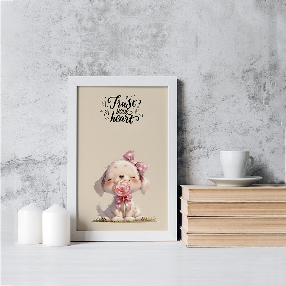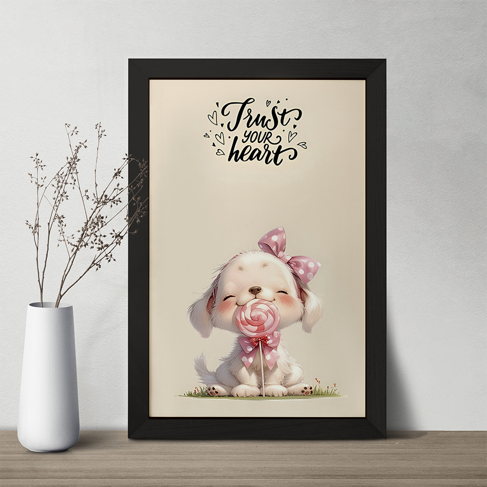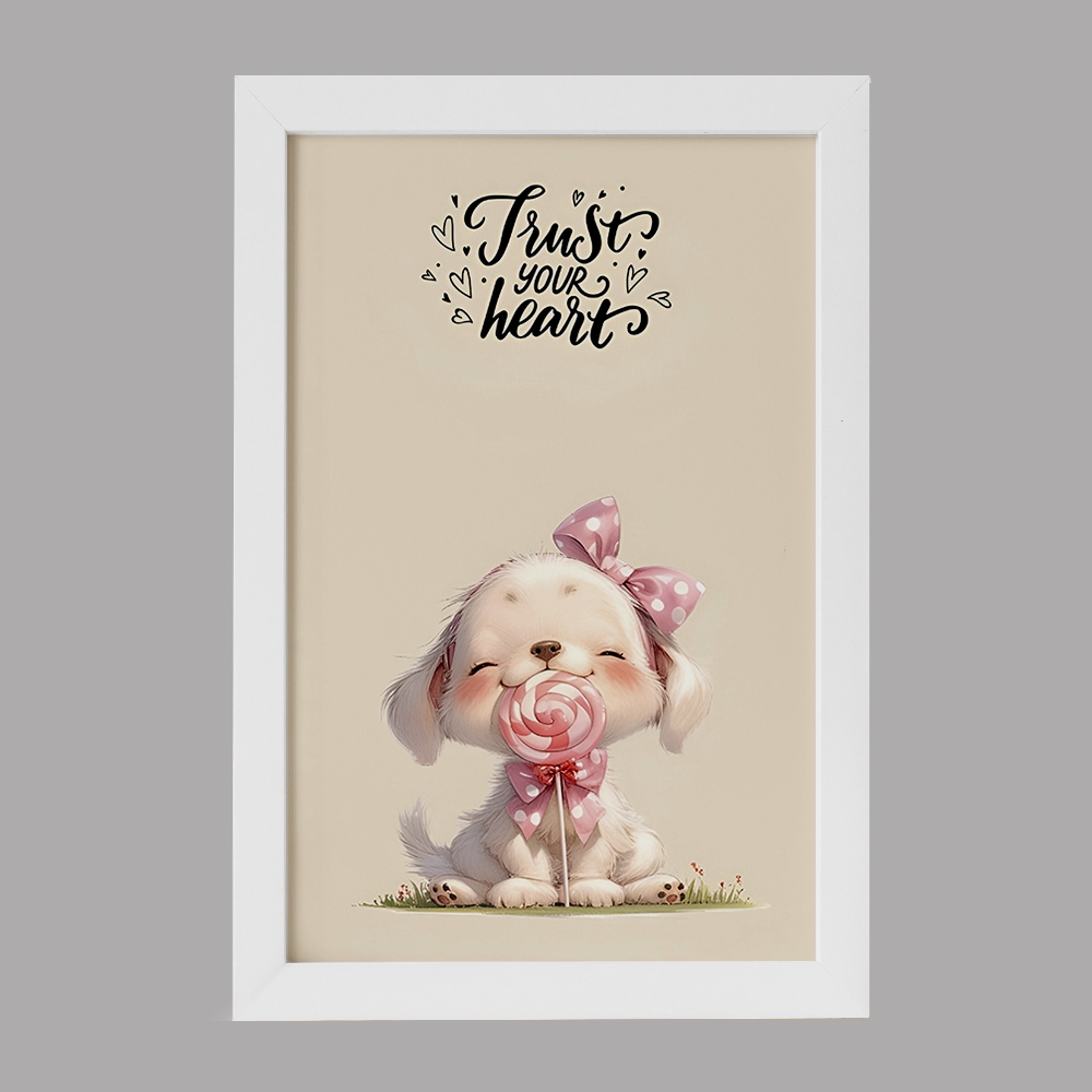 تابلو یا قاب عکس سگ کیوت خندالو در ابعاد مختلف با استفاده از بهترین برند پروفیل پی وی سی دو سانتی متری بسیار مرغوب، تولید شده اند و در مونتاژ و نصب آنها نهایت دقت در قرارگیری هر چه دقیق تر لبه ها به یکدیگر صورت گرفته است. همچنین در پشت قاب ها گیره ای برای اتصال راحت به دیوار تعبیه شده است.