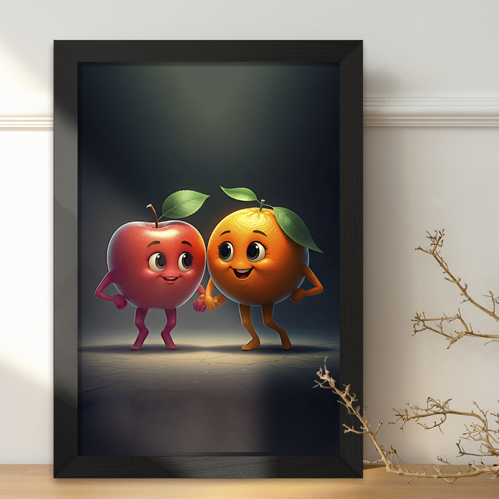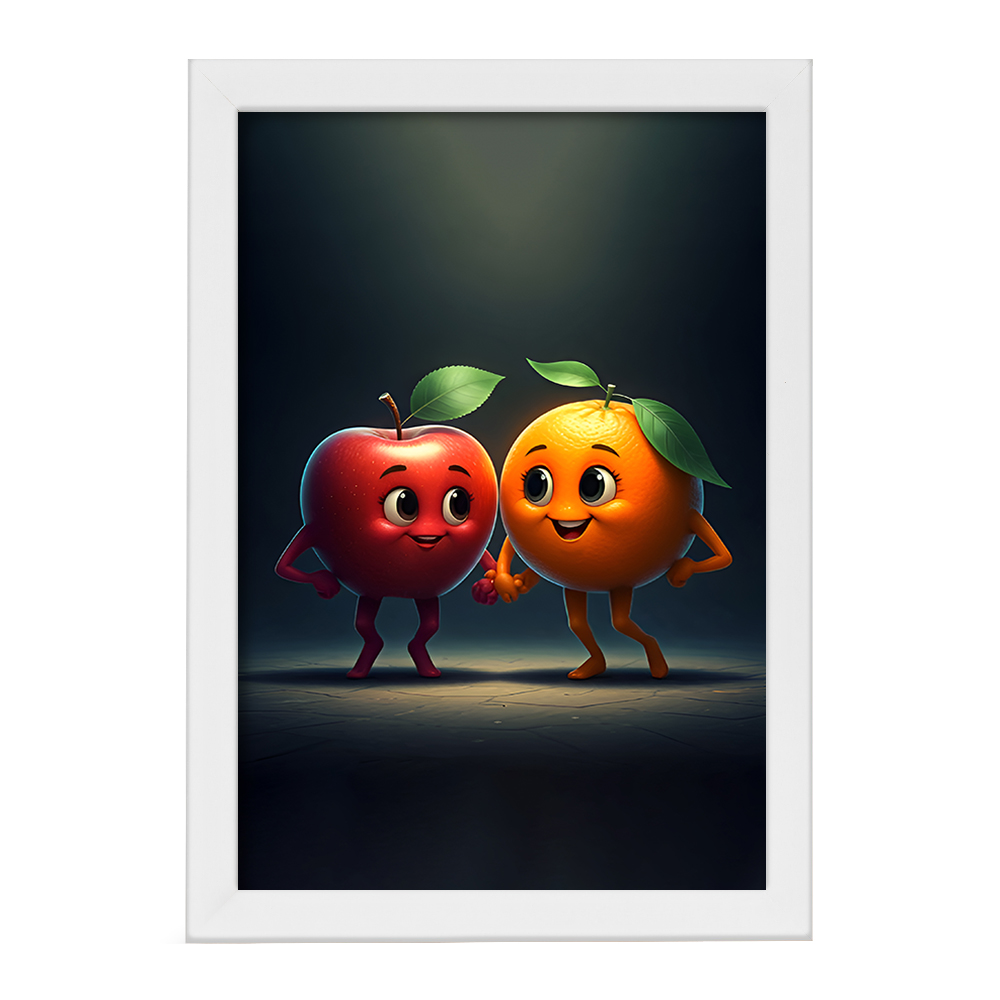 تابلو یا قاب عکس سیب و پرتقال خندالو در ابعاد مختلف با استفاده از بهترین برند پروفیل پی وی سی دو سانتی متری بسیار مرغوب، تولید شده اند و در مونتاژ و نصب آنها نهایت دقت در قرارگیری هر چه دقیق تر لبه ها به یکدیگر صورت گرفته است. همچنین در پشت قاب ها گیره ای برای اتصال راحت به دیوار تعبیه شده است. چاپ طرح تابلوی سیب و پرتقال با بالاترین کیفیت بوسیله چاپگرهای دیجیتال شش رنگ و کاغذ با کیفیت عکاسی انجام شده و بر روی آن شیشه ای با کیفیت و شفاف در سطح قاب قرار گرفته که از کاغذ عکس محافظت میکند. بسته بندی تابلوها جعبه های مقاوم و محکمی بوده که علاوه بر محافظتی که از بدنه قاب می کند، ظاهر جذابی دارد و تابلوی سیب و پرتقال را بدل به محصولی مناسب هدیه کرده است. تابلوهای خندالو با تنوع طرحی بسیار بالا شامل تابلو های دکوراتیو قابل استفاده در اتاق کودک، محل کار و منازل می باشد که سلیقه هر مخاطبی را پوشش می دهد، ضمن اینکه امکان تعویض عکس موجود در قاب وجود داشته و می توان عکس های خانوادگی و … را نیز در آن قرار داد.