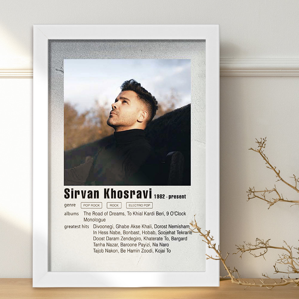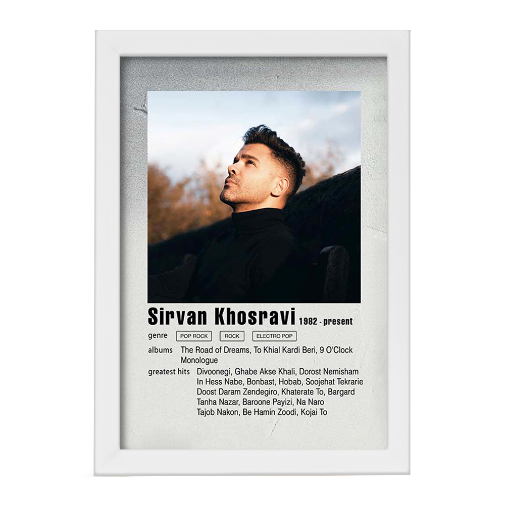 تابلو یا قاب عکس سیروان خسروی خندالو در ابعاد مختلف با استفاده از بهترین برند پروفیل پی وی سی دو سانتی متری بسیار مرغوب، تولید شده اند و در مونتاژ و نصب آنها نهایت دقت در قرارگیری هر چه دقیق تر لبه ها به یکدیگر صورت گرفته است. همچنین در پشت قاب ها گیره ای برای اتصال راحت به دیوار تعبیه شده است.