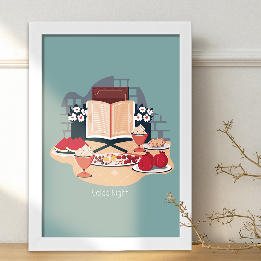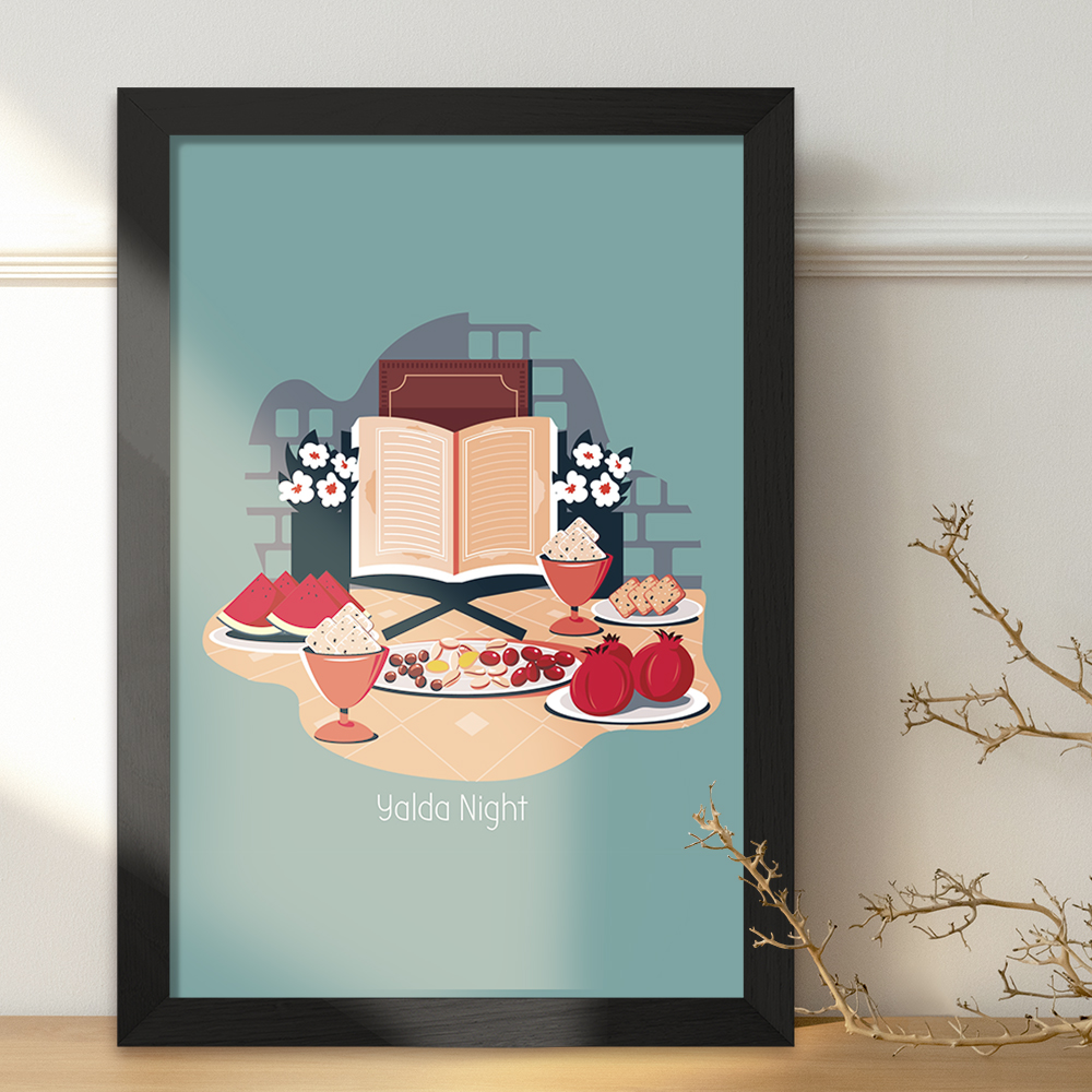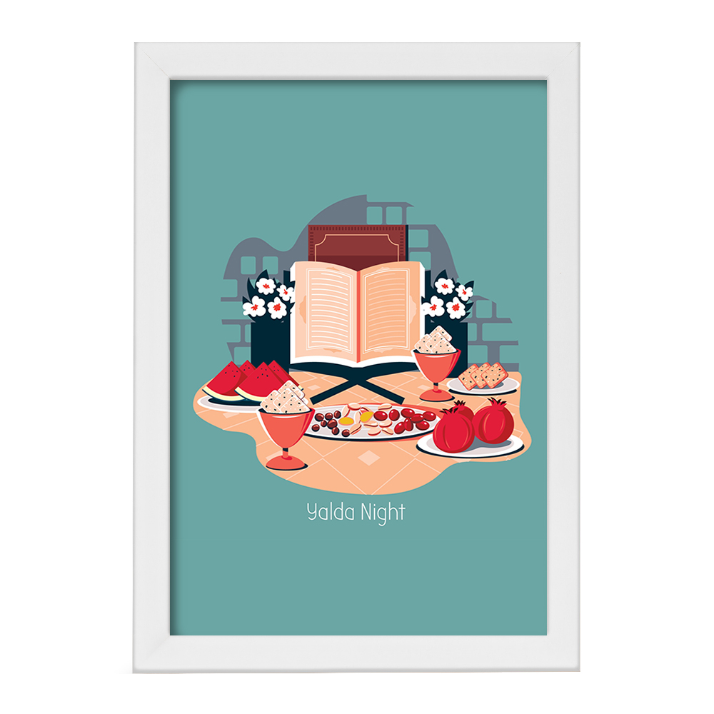 تابلو یا قاب عکس شب یلدا خندالو در ابعاد مختلف با استفاده از بهترین برند پروفیل پی وی سی دو سانتی متری بسیار مرغوب، تولید شده اند و در مونتاژ و نصب آنها نهایت دقت در قرارگیری هر چه دقیق تر لبه ها به یکدیگر صورت گرفته است. همچنین در پشت قاب ها گیره ای برای اتصال راحت به دیوار تعبیه شده است.