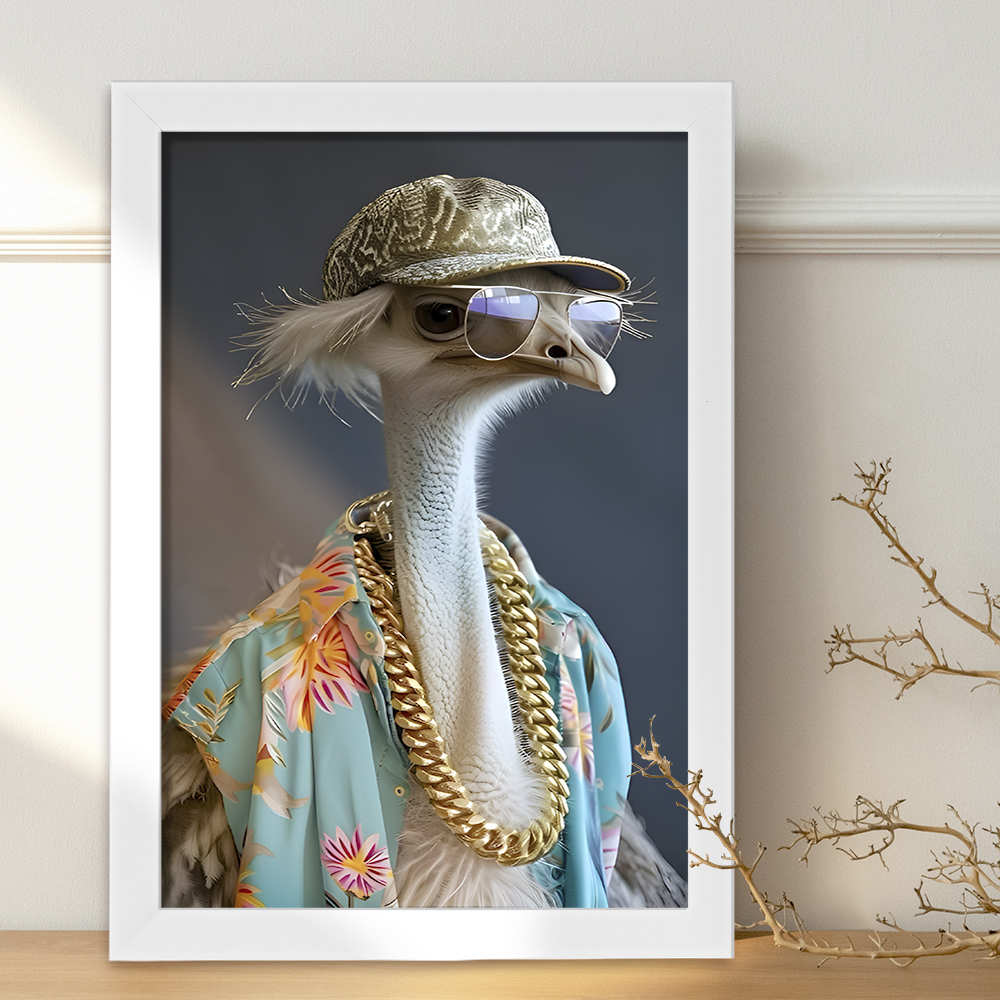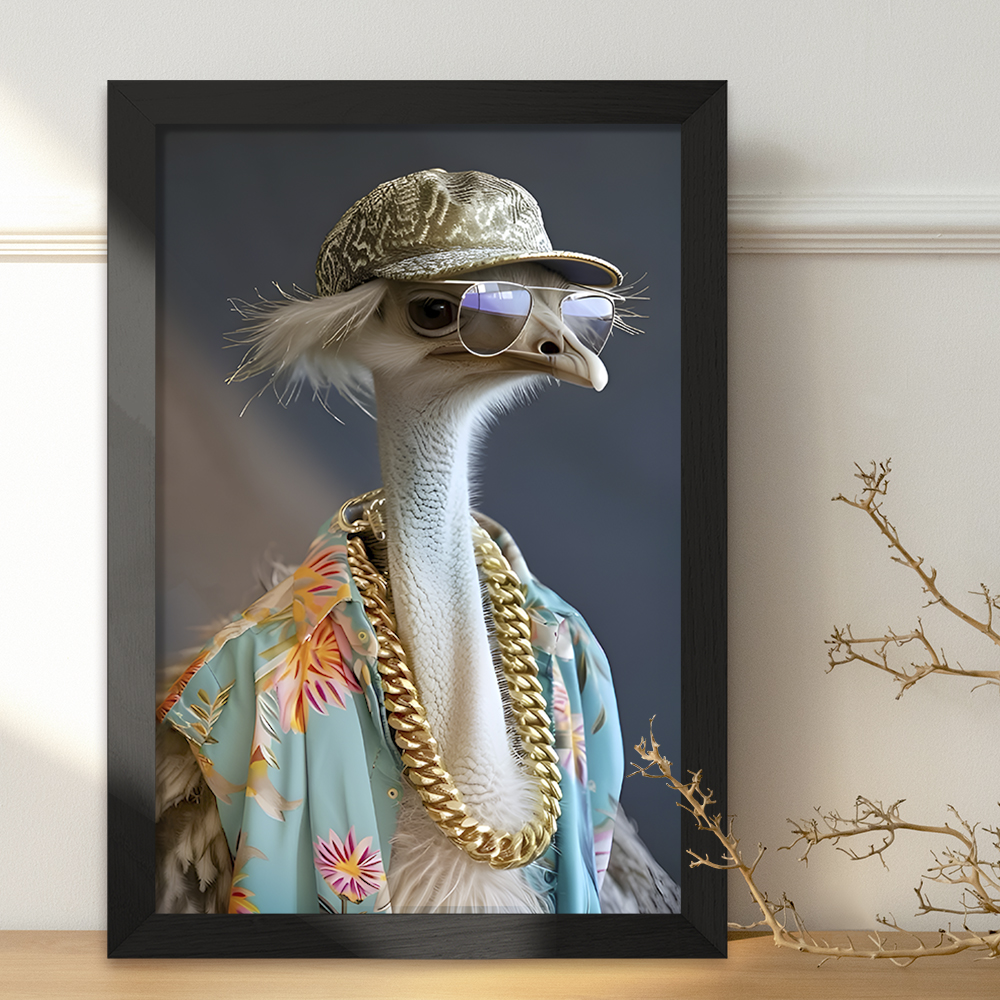 تابلو یا قاب عکس شتر مرغ پولدار خندالو در ابعاد مختلف با استفاده از بهترین برند پروفیل پی وی سی دو سانتی متری بسیار مرغوب، تولید شده اند و در مونتاژ و نصب آنها نهایت دقت در قرارگیری هر چه دقیق تر لبه ها به یکدیگر صورت گرفته است. همچنین در پشت قاب ها گیره ای برای اتصال راحت به دیوار تعبیه شده است. چاپ طرح تابلوی شتر مرغ پولدار با بالاترین کیفیت بوسیله چاپگرهای دیجیتال شش رنگ و کاغذ با کیفیت عکاسی انجام شده و بر روی آن شیشه ای با کیفیت و شفاف در سطح قاب قرار گرفته که از کاغذ عکس محافظت میکند. بسته بندی تابلوها جعبه های مقاوم و محکمی بوده که علاوه بر محافظتی که از بدنه قاب می کند، ظاهر جذابی دارد و تابلوی شتر مرغ پولدار را بدل به محصولی مناسب هدیه کرده است. تابلوهای خندالو با تنوع طرحی بسیار بالا شامل تابلو های دکوراتیو قابل استفاده در اتاق کودک، محل کار و منازل می باشد که سلیقه هر مخاطبی را پوشش می دهد، ضمن اینکه امکان تعویض عکس موجود در قاب وجود داشته و می توان عکس های خانوادگی و … را نیز در آن قرار داد.