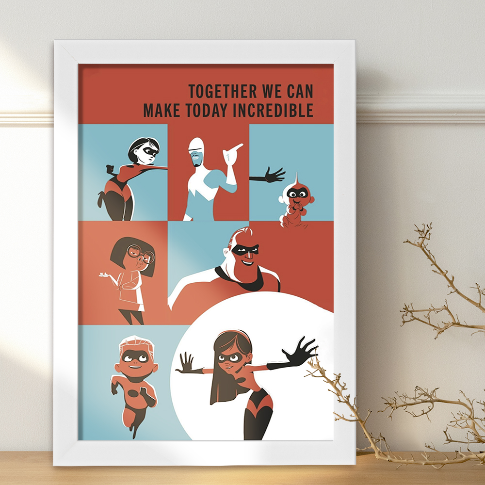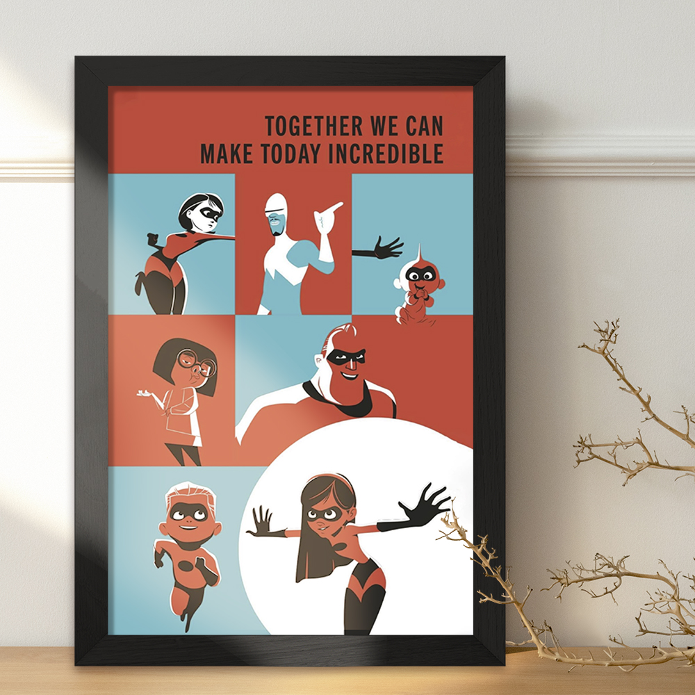 تابلو یا قاب عکس شگفت انگیزان (The Incredibles) خندالو در ابعاد مختلف با استفاده از بهترین برند پروفیل پی وی سی دو سانتی متری بسیار مرغوب، تولید شده اند و در مونتاژ و نصب آنها نهایت دقت در قرارگیری هر چه دقیق تر لبه ها به یکدیگر صورت گرفته است. همچنین در پشت قاب ها گیره ای برای اتصال راحت به دیوار تعبیه شده است.