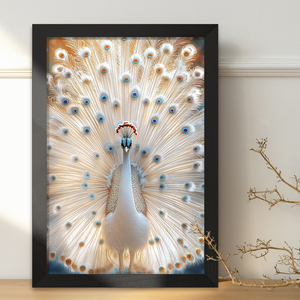 تابلو یا قاب عکس طاووس خندالو در ابعاد مختلف با استفاده از بهترین برند پروفیل پی وی سی دو سانتی متری بسیار مرغوب، تولید شده اند و در مونتاژ و نصب آنها نهایت دقت در قرارگیری هر چه دقیق تر لبه ها به یکدیگر صورت گرفته است. همچنین در پشت قاب ها گیره ای برای اتصال راحت به دیوار تعبیه شده است.