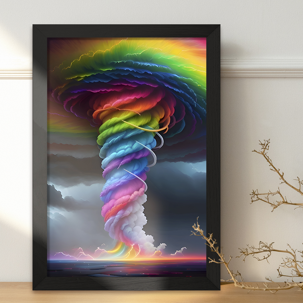 تابلو یا قاب عکس طوفان رنگی خندالو در ابعاد مختلف با استفاده از بهترین برند پروفیل پی وی سی دو سانتی متری بسیار مرغوب، تولید شده اند و در مونتاژ و نصب آنها نهایت دقت در قرارگیری هر چه دقیق تر لبه ها به یکدیگر صورت گرفته است. همچنین در پشت قاب ها گیره ای برای اتصال راحت به دیوار تعبیه شده است.