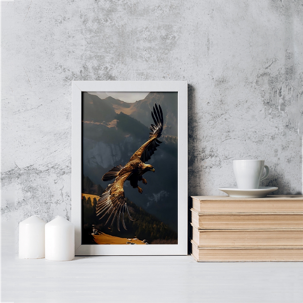 تابلو یا قاب عکس عقاب خندالو در ابعاد مختلف با استفاده از بهترین برند پروفیل پی وی سی دو سانتی متری بسیار مرغوب، تولید شده اند و در مونتاژ و نصب آنها نهایت دقت در قرارگیری هر چه دقیق تر لبه ها به یکدیگر صورت گرفته است. همچنین در پشت قاب ها گیره ای برای اتصال راحت به دیوار تعبیه شده است.