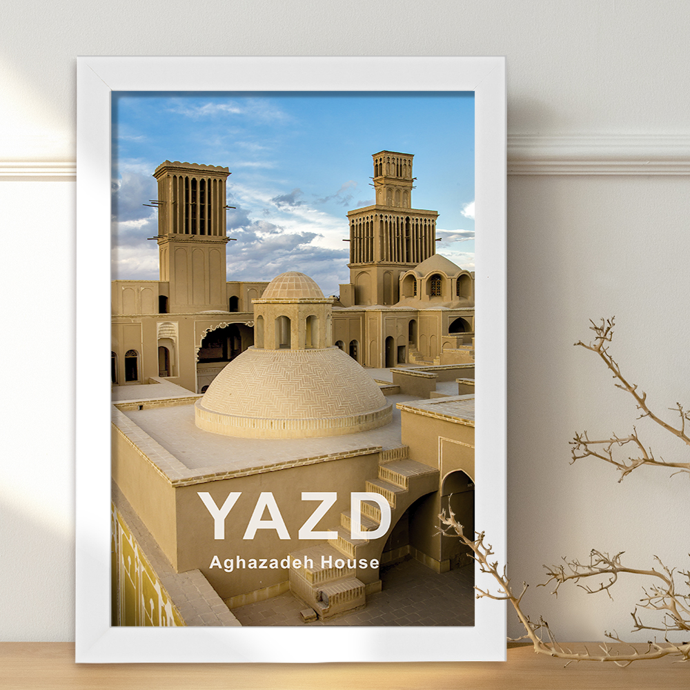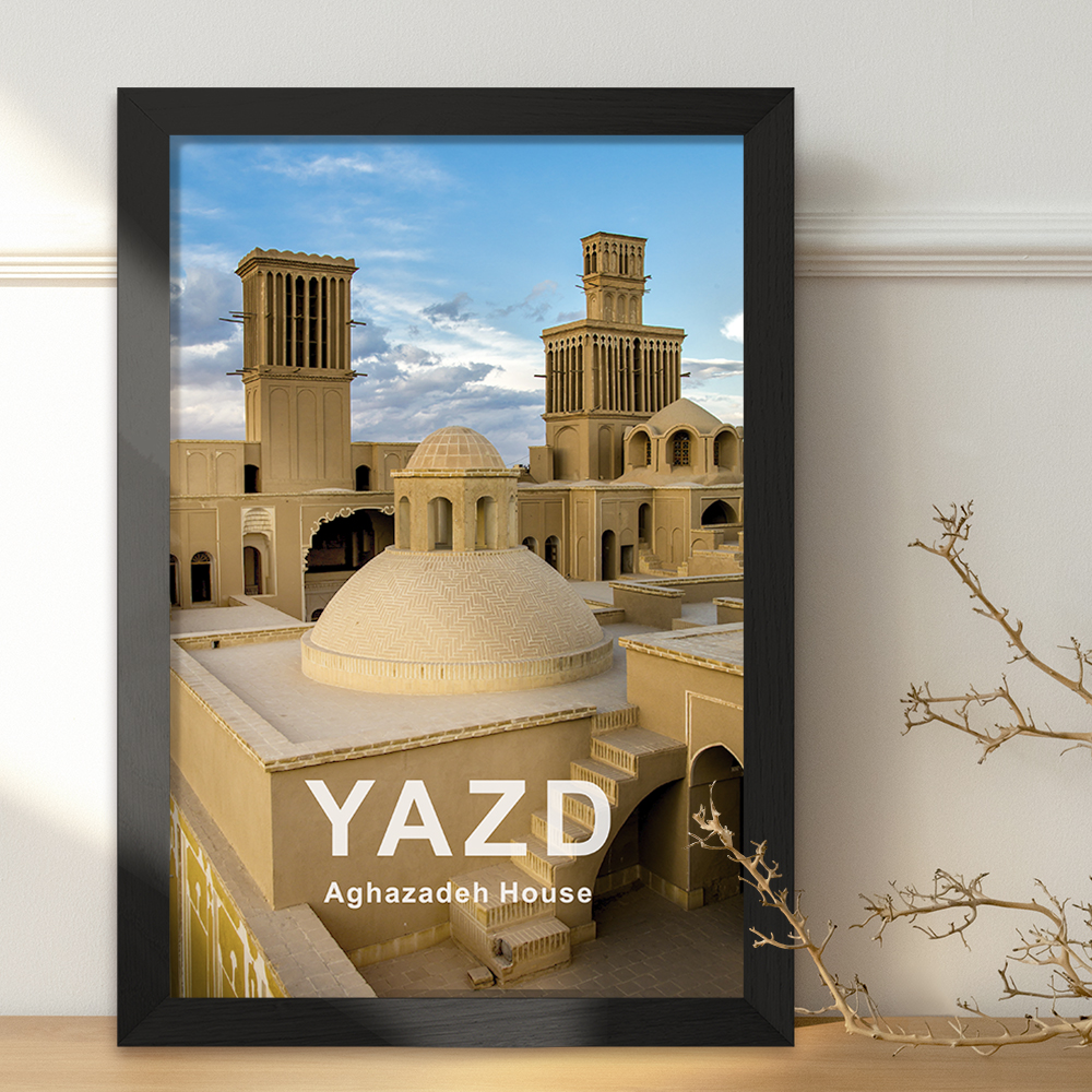 تابلو یا قاب عکس عمارت آقازاده یزد خندالو در ابعاد مختلف با استفاده از بهترین برند پروفیل پی وی سی دو سانتی متری بسیار مرغوب، تولید شده اند و در مونتاژ و نصب آنها نهایت دقت در قرارگیری هر چه دقیق تر لبه ها به یکدیگر صورت گرفته است. همچنین در پشت قاب ها گیره ای برای اتصال راحت به دیوار تعبیه شده است. چاپ طرح تابلوی عمارت آقازاده یزد با بالاترین کیفیت بوسیله چاپگرهای دیجیتال شش رنگ و کاغذ با کیفیت عکاسی انجام شده و بر روی آن شیشه ای با کیفیت و شفاف در سطح قاب قرار گرفته که از کاغذ عکس محافظت میکند. بسته بندی تابلوها جعبه های مقاوم و محکمی بوده که علاوه بر محافظتی که از بدنه قاب می کند، ظاهر جذابی دارد و تابلوی عمارت آقازاده یزد را بدل به محصولی مناسب هدیه کرده است. تابلوهای خندالو با تنوع طرحی بسیار بالا شامل تابلو های دکوراتیو قابل استفاده در اتاق کودک، محل کار و منازل می باشد که سلیقه هر مخاطبی را پوشش می دهد، ضمن اینکه امکان تعویض عکس موجود در قاب وجود داشته و می توان عکس های خانوادگی و … را نیز در آن قرار داد.