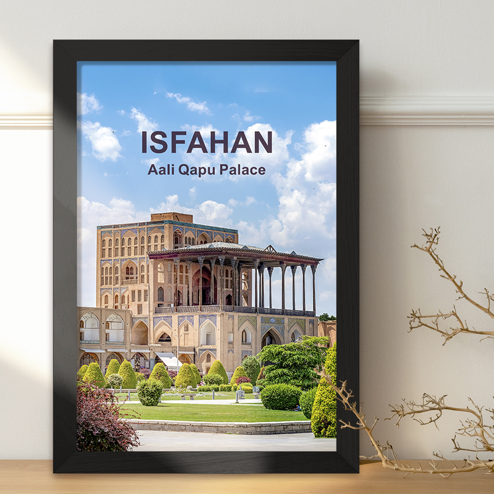 تابلو یا قاب عکس عمارت عالی قاپو اصفهان خندالو در ابعاد مختلف با استفاده از بهترین برند پروفیل پی وی سی دو سانتی متری بسیار مرغوب، تولید شده اند و در مونتاژ و نصب آنها نهایت دقت در قرارگیری هر چه دقیق تر لبه ها به یکدیگر صورت گرفته است. همچنین در پشت قاب ها گیره ای برای اتصال راحت به دیوار تعبیه شده است.
