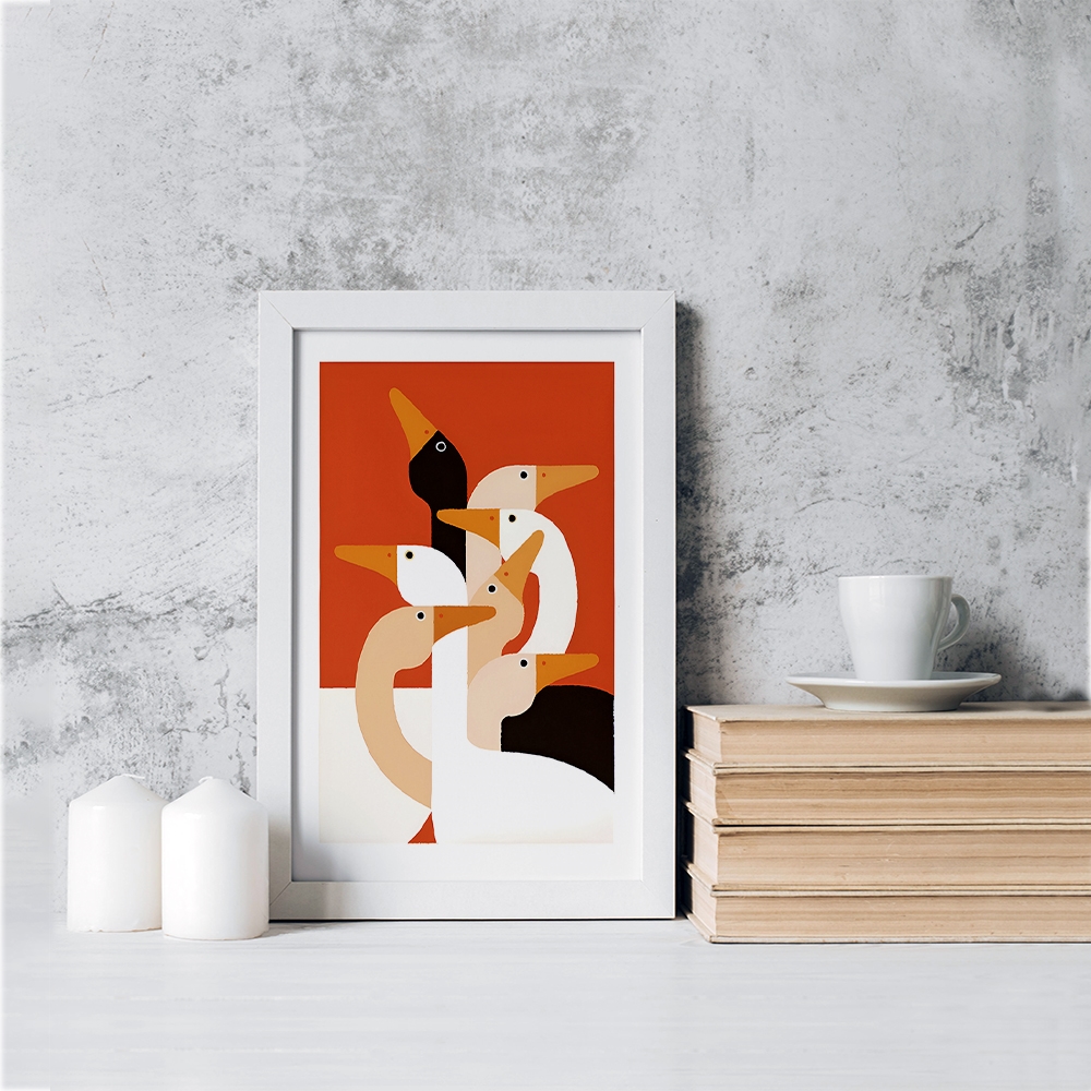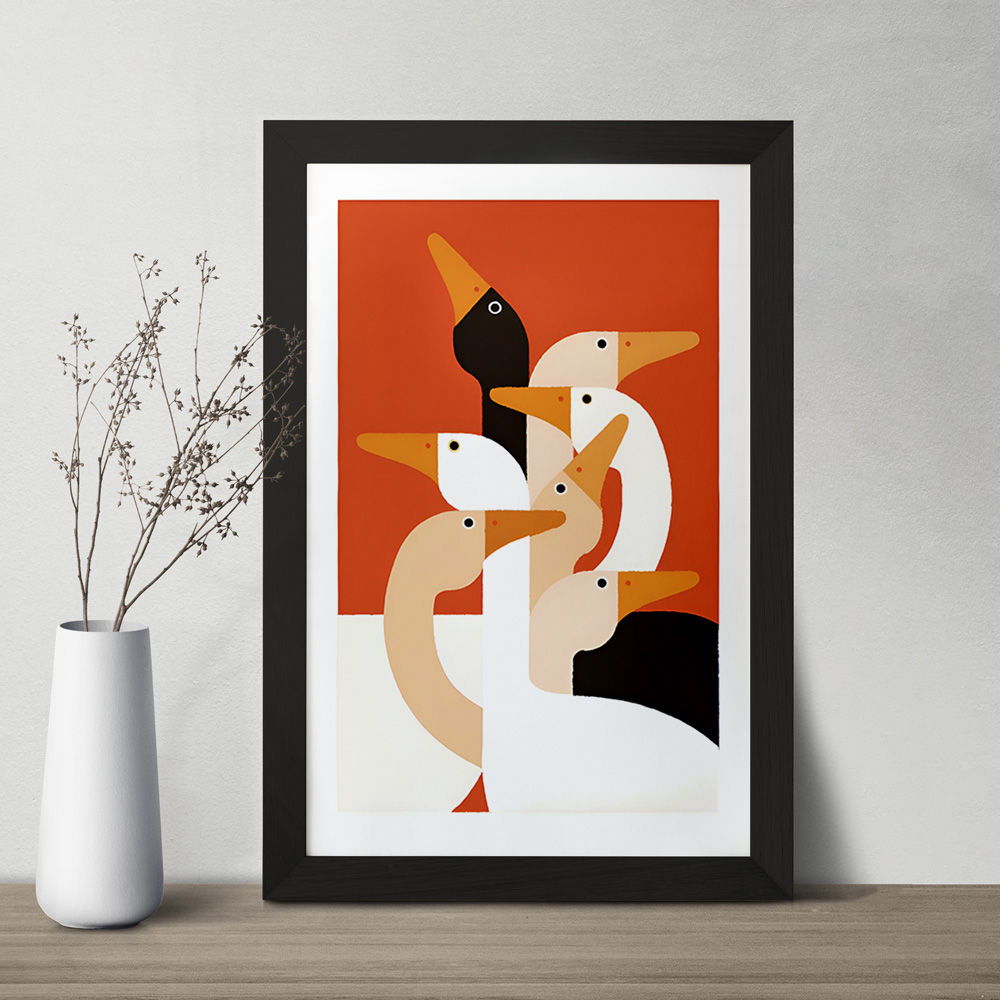 تابلو یا قاب عکس غاز های وحشی خندالو در ابعاد مختلف با استفاده از بهترین برند پروفیل پی وی سی دو سانتی متری بسیار مرغوب، تولید شده اند و در مونتاژ و نصب آنها نهایت دقت در قرارگیری هر چه دقیق تر لبه ها به یکدیگر صورت گرفته است. همچنین در پشت قاب ها گیره ای برای اتصال راحت به دیوار تعبیه شده است. چاپ طرح تابلوی غاز های وحشی با بالاترین کیفیت بوسیله چاپگرهای دیجیتال شش رنگ و کاغذ با کیفیت عکاسی انجام شده و بر روی آن شیشه ای با کیفیت و شفاف در سطح قاب قرار گرفته که از کاغذ عکس محافظت میکند. بسته بندی تابلوها جعبه های مقاوم و محکمی بوده که علاوه بر محافظتی که از بدنه قاب می کند، ظاهر جذابی دارد و تابلوی غاز های وحشی را بدل به محصولی مناسب هدیه کرده است. تابلوهای خندالو با تنوع طرحی بسیار بالا شامل تابلو های دکوراتیو قابل استفاده در اتاق کودک، محل کار و منازل می باشد که سلیقه هر مخاطبی را پوشش می دهد، ضمن اینکه امکان تعویض عکس موجود در قاب وجود داشته و می توان عکس های خانوادگی و … را نیز در آن قرار داد.
