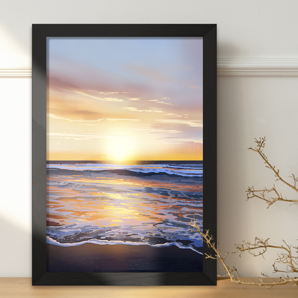 تابلو یا قاب عکس غروب دریا خندالو در ابعاد مختلف با استفاده از بهترین برند پروفیل پی وی سی دو سانتی متری بسیار مرغوب، تولید شده اند و در مونتاژ و نصب آنها نهایت دقت در قرارگیری هر چه دقیق تر لبه ها به یکدیگر صورت گرفته است. همچنین در پشت قاب ها گیره ای برای اتصال راحت به دیوار تعبیه شده است. چاپ طرح تابلوی غروب دریا با بالاترین کیفیت بوسیله چاپگرهای دیجیتال شش رنگ و کاغذ با کیفیت عکاسی انجام شده و بر روی آن شیشه ای با کیفیت و شفاف در سطح قاب قرار گرفته که از کاغذ عکس محافظت میکند. بسته بندی تابلوها جعبه های مقاوم و محکمی بوده که علاوه بر محافظتی که از بدنه قاب می کند، ظاهر جذابی دارد و تابلوی غروب دریا را بدل به محصولی مناسب هدیه کرده است. تابلوهای خندالو با تنوع طرحی بسیار بالا شامل تابلو های دکوراتیو قابل استفاده در اتاق کودک، محل کار و منازل می باشد که سلیقه هر مخاطبی را پوشش می دهد، ضمن اینکه امکان تعویض عکس موجود در قاب وجود داشته و می توان عکس های خانوادگی و … را نیز در آن قرار داد.